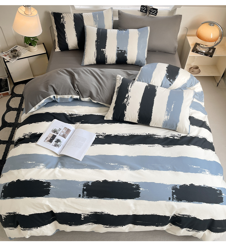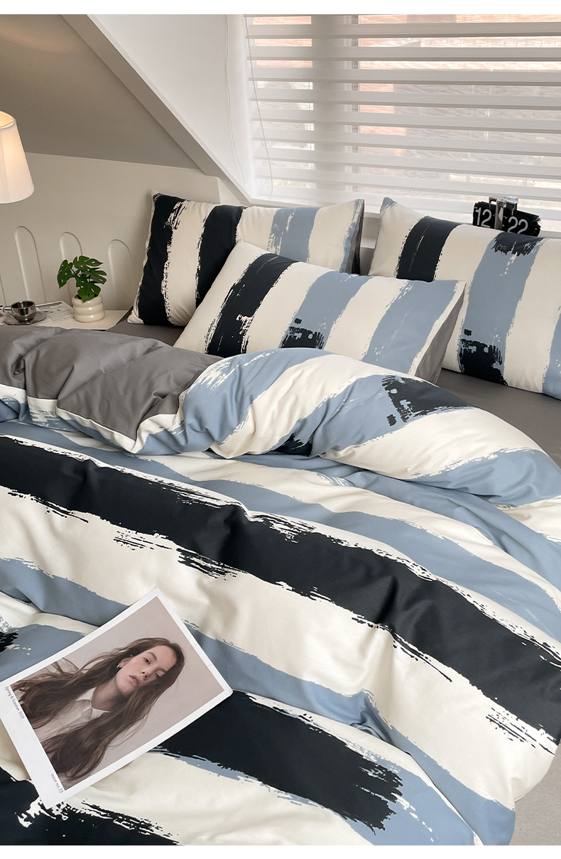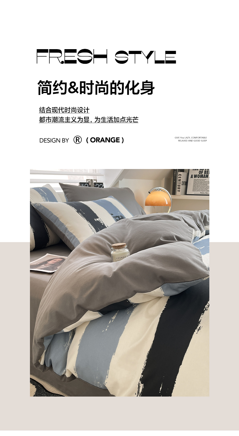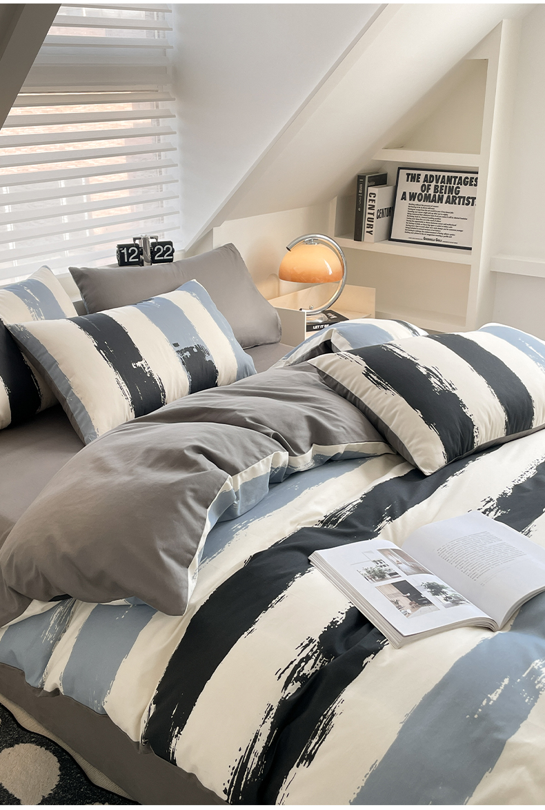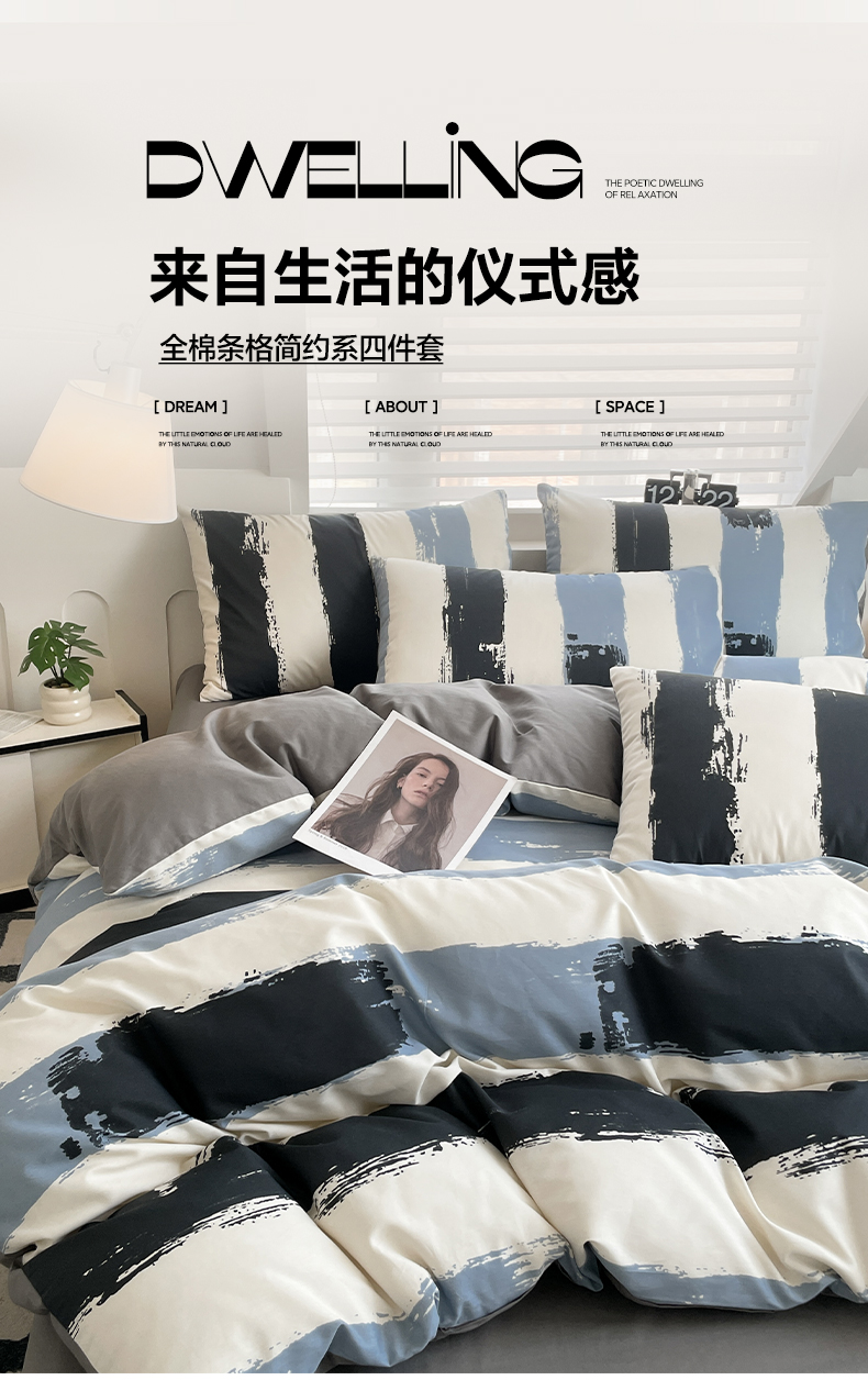 雅居纺家纺 2025新款全棉条格简约系四件套 拿布伦