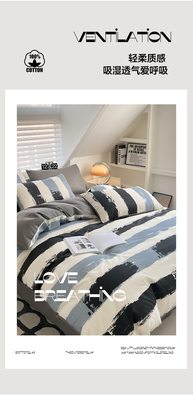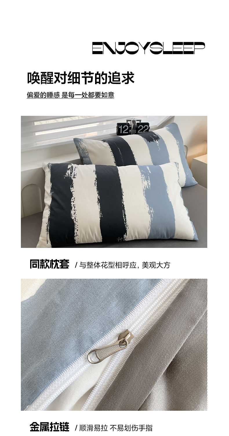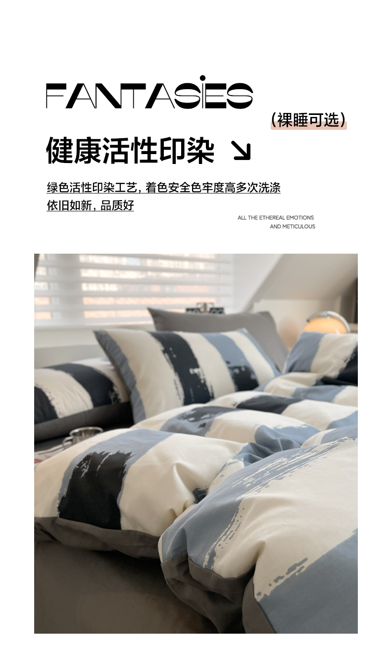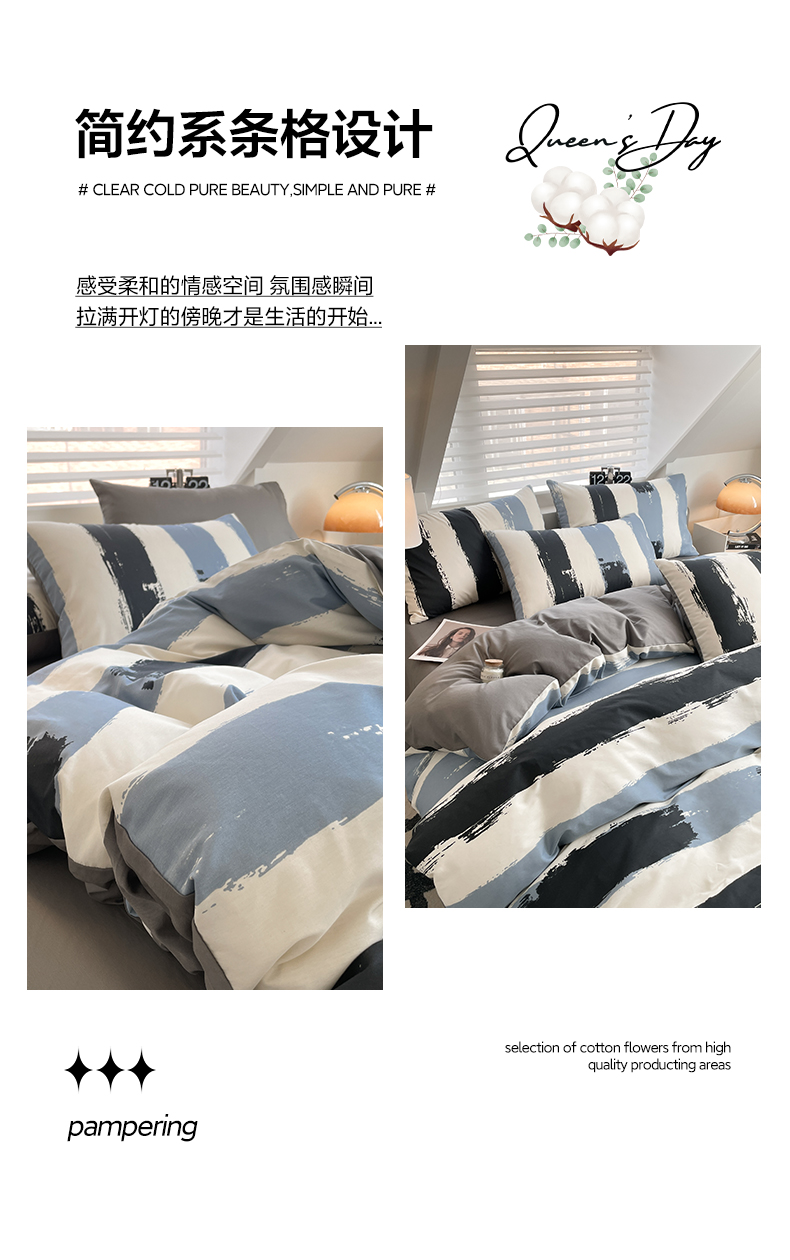 雅居纺家纺 2025新款全棉条格简约系四件套 拿布伦