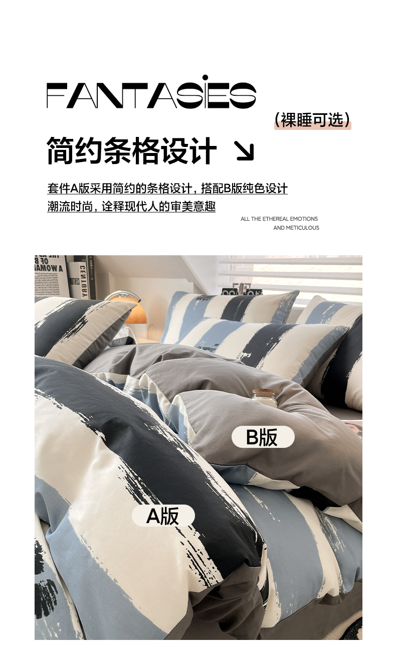 商品名称:雅居纺家纺 2025新款全棉条格简约系四件套 拿布伦