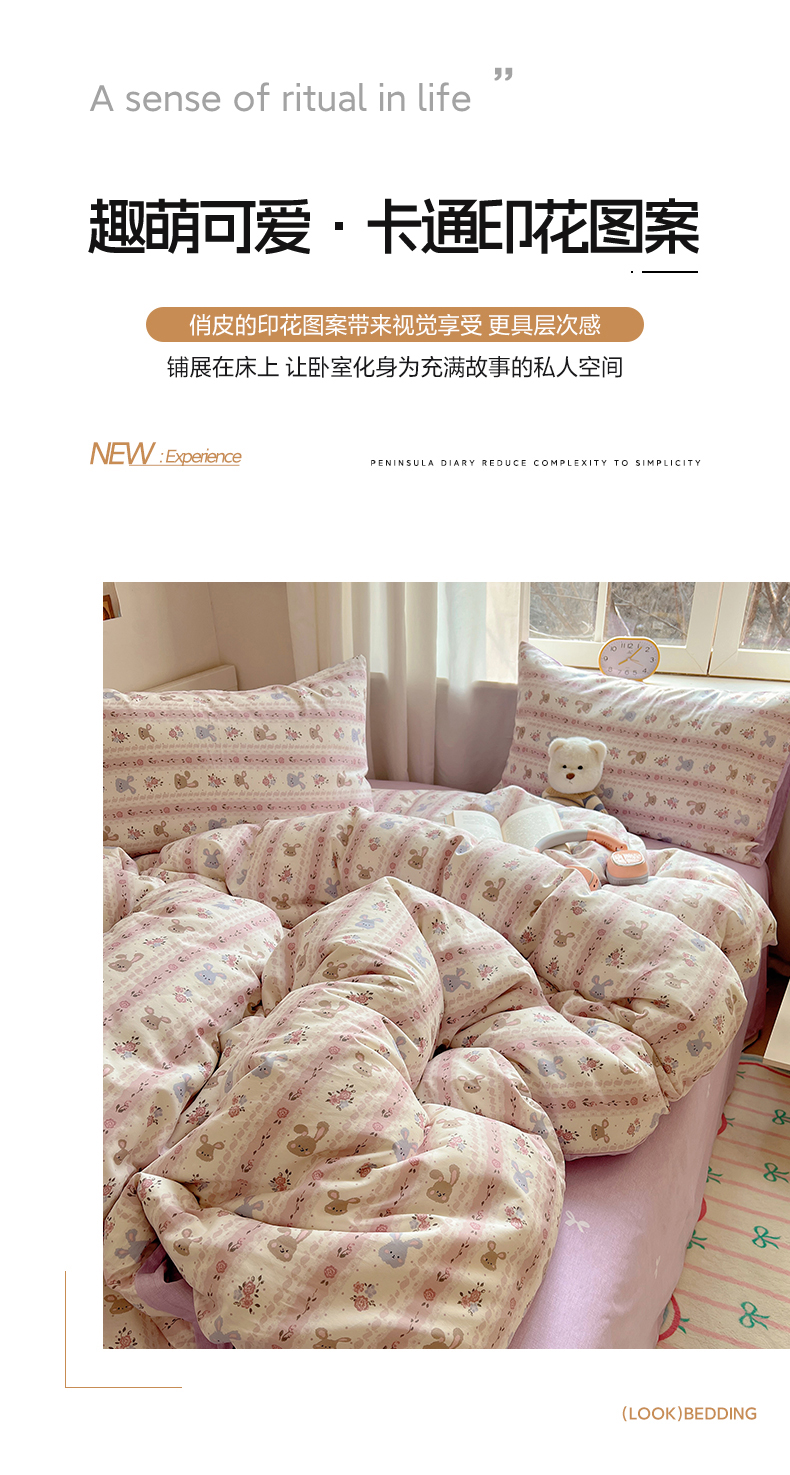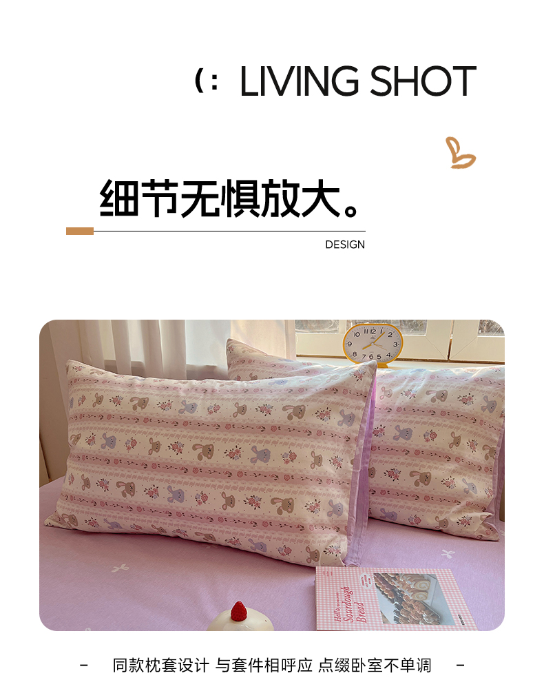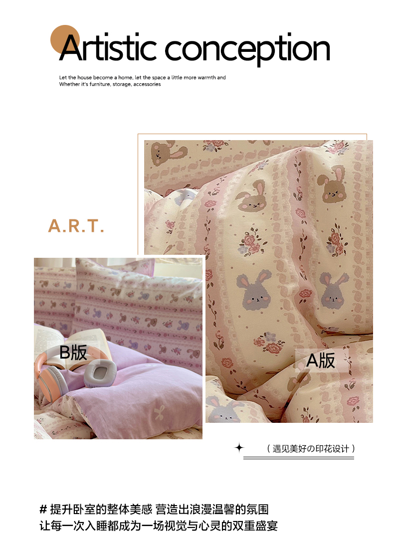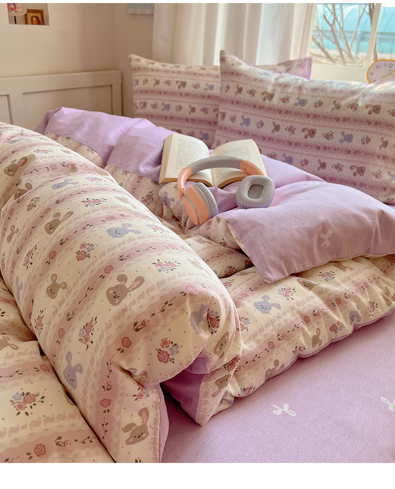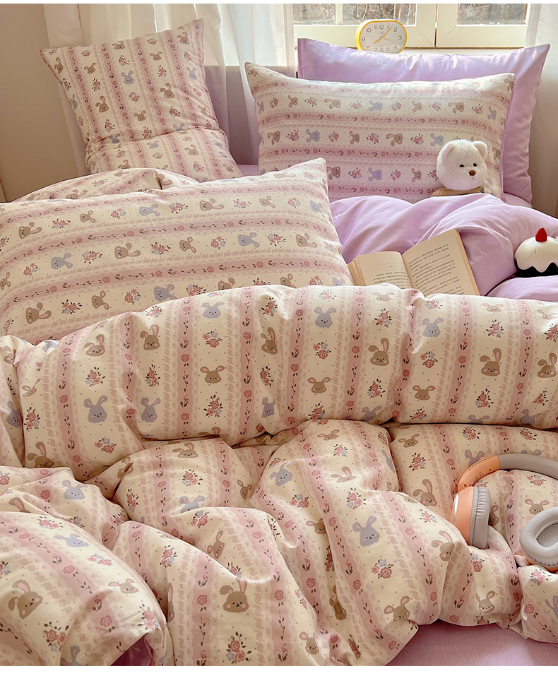 雅居纺家纺 2025新款全棉小清新四件套 花园萌兔