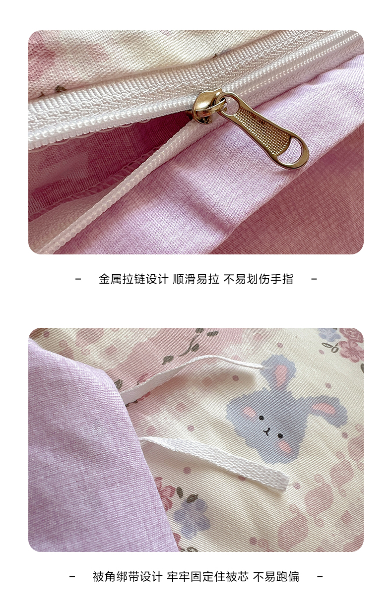 商品名称:雅居纺家纺 2025新款全棉小清新四件套 花园萌兔