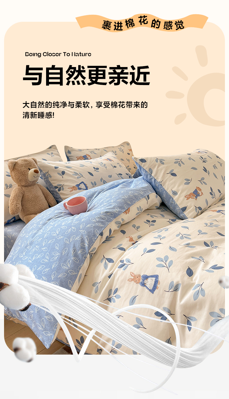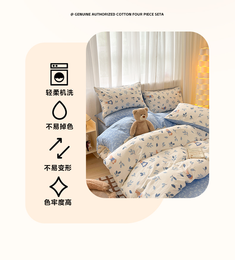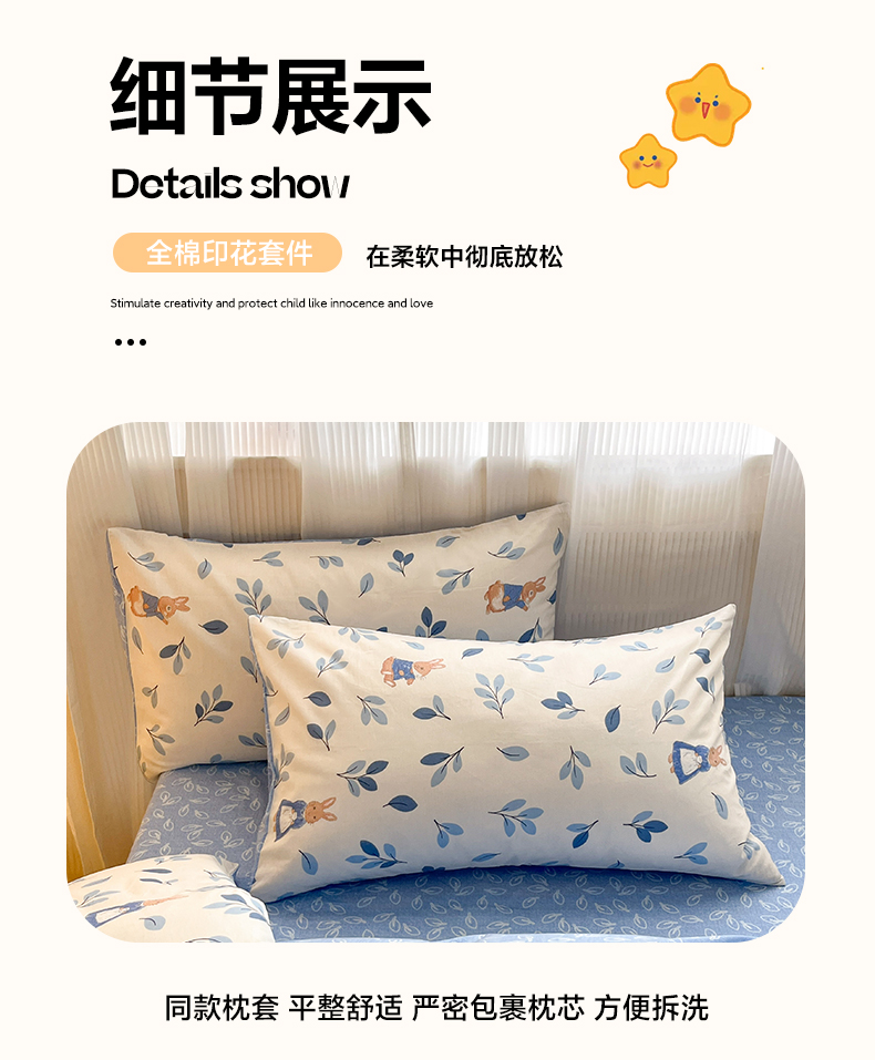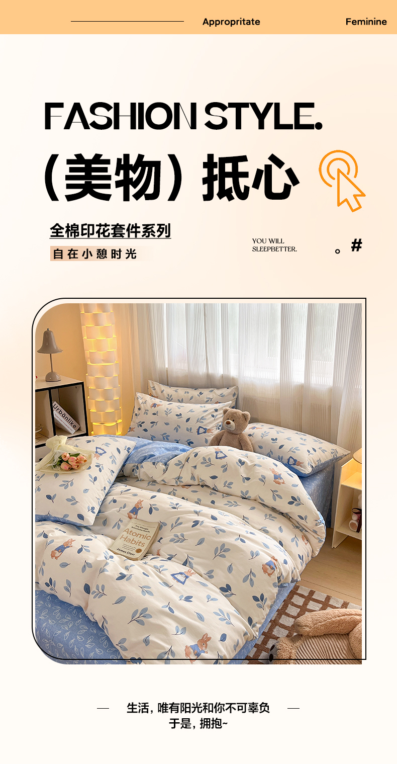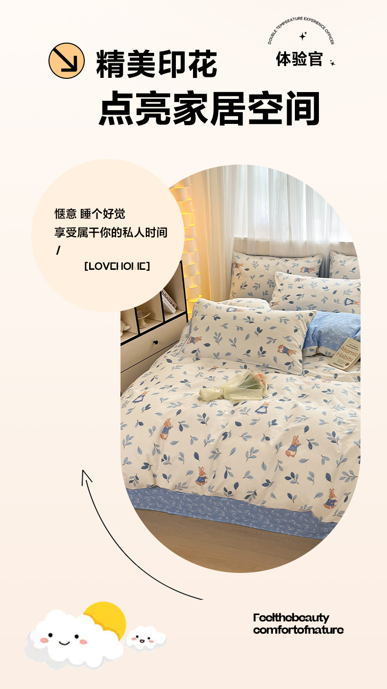 商品名称:雅居纺家纺 2025新款全棉小清新四件套 萌萌兔