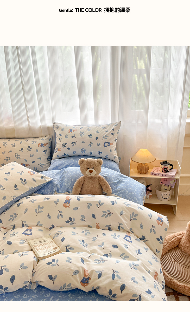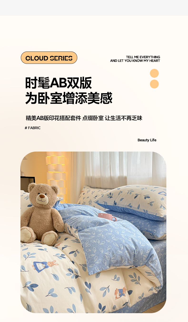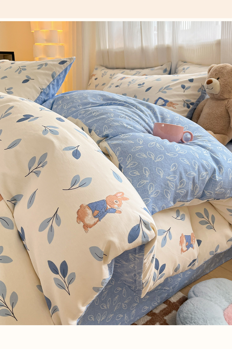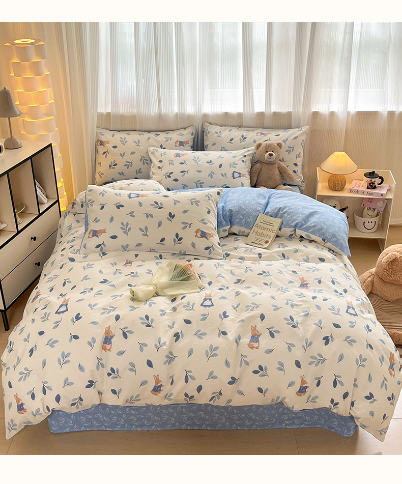 雅居纺家纺 2025新款全棉小清新四件套 萌萌兔