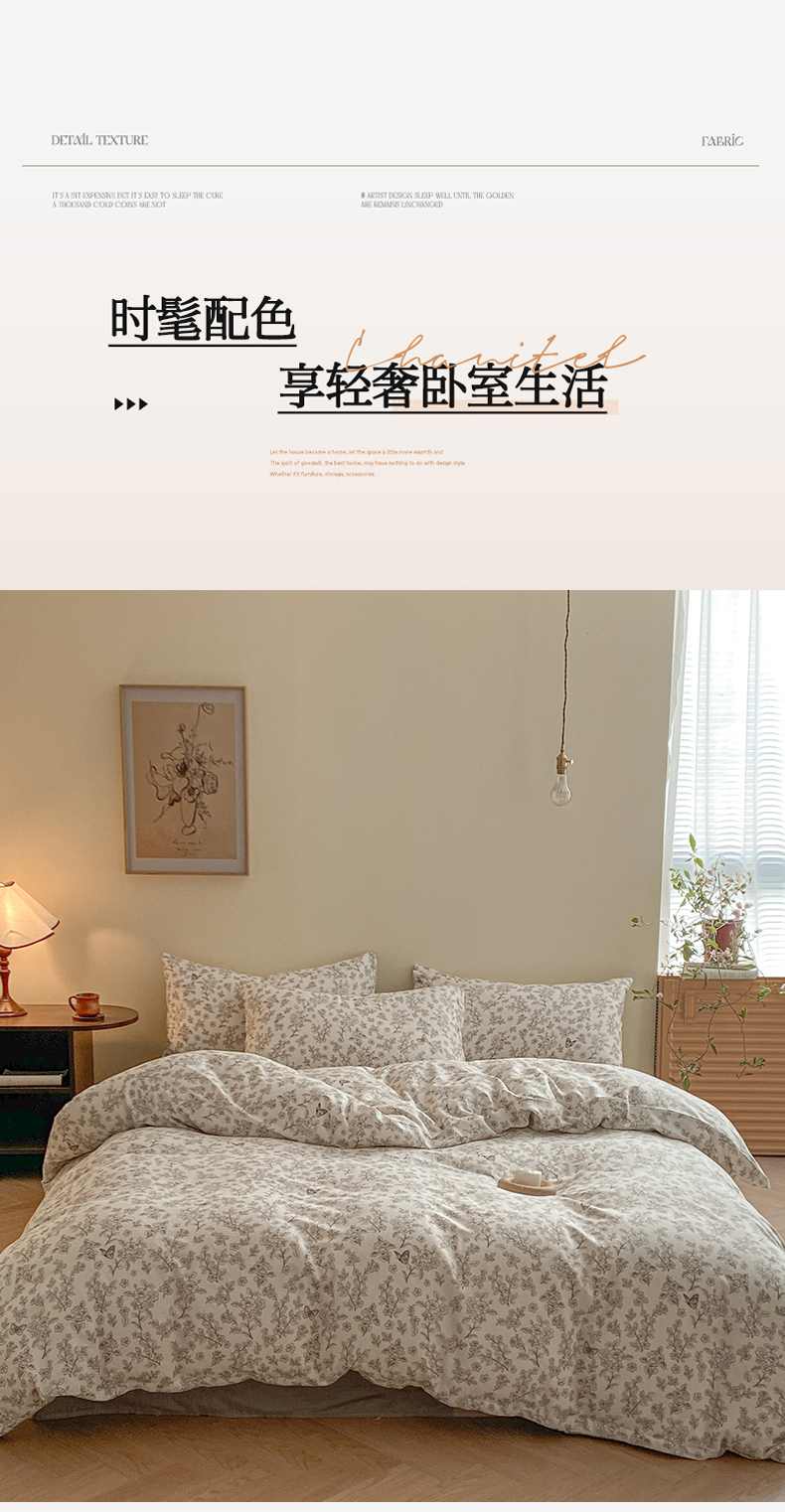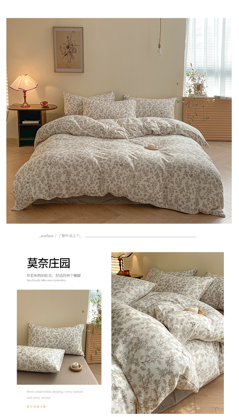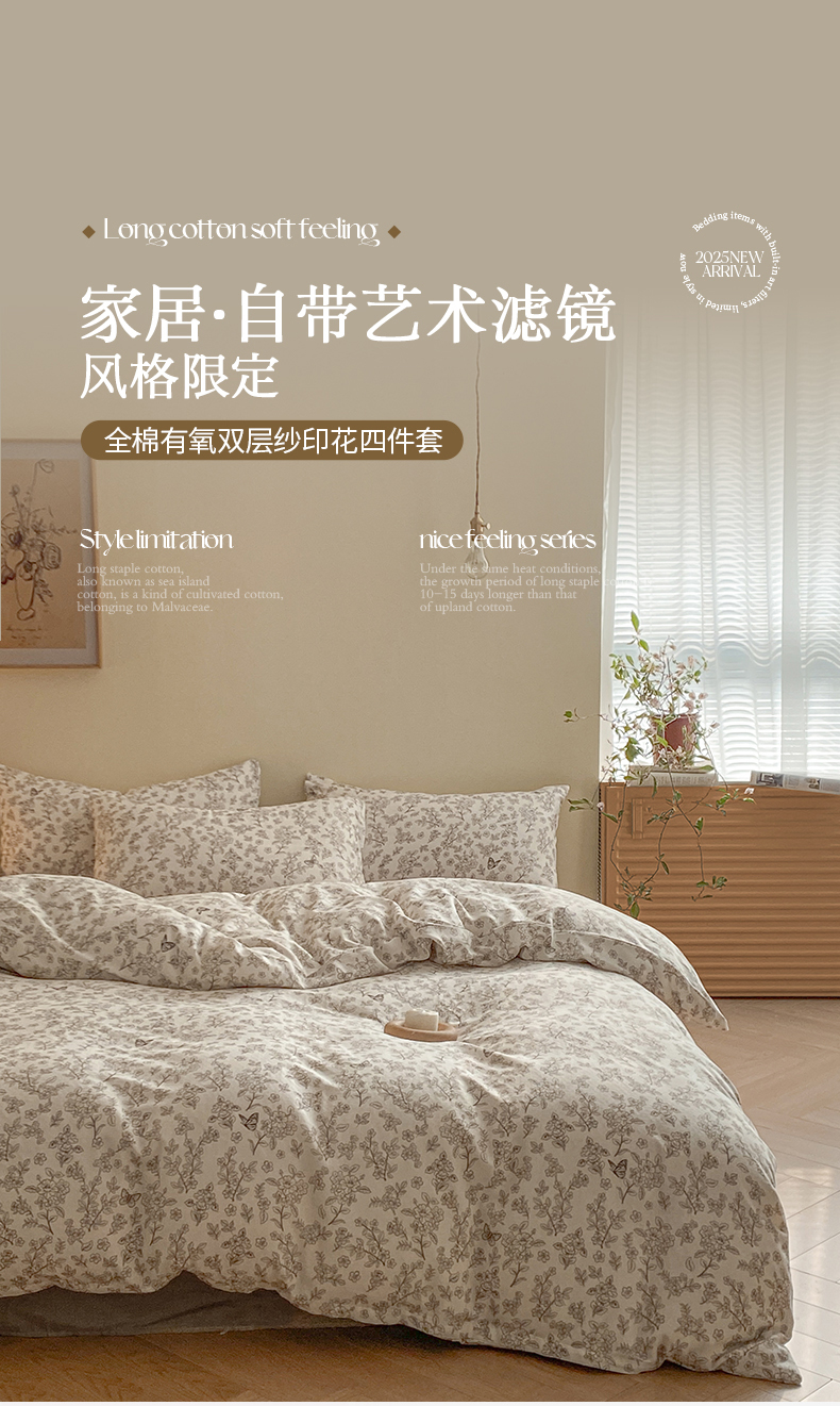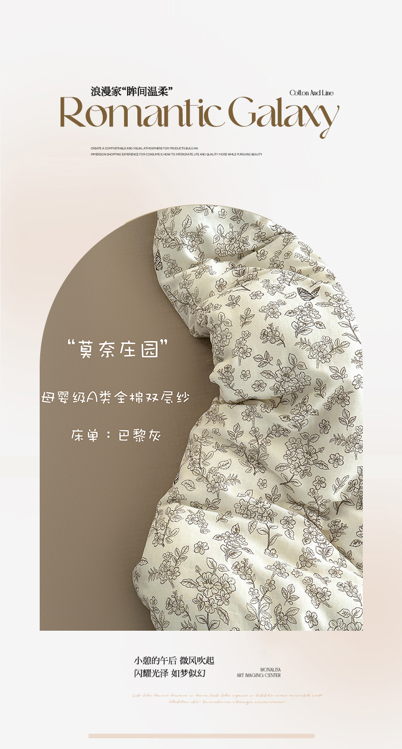 当前位置: 91家纺网 > 商品网购 > 床品套件 > 四件套 > 全棉普通四件套 > 2025新款A类母婴级有氧全棉纯棉双层纱纯棉印花四件套 场景一 莫奈庄园