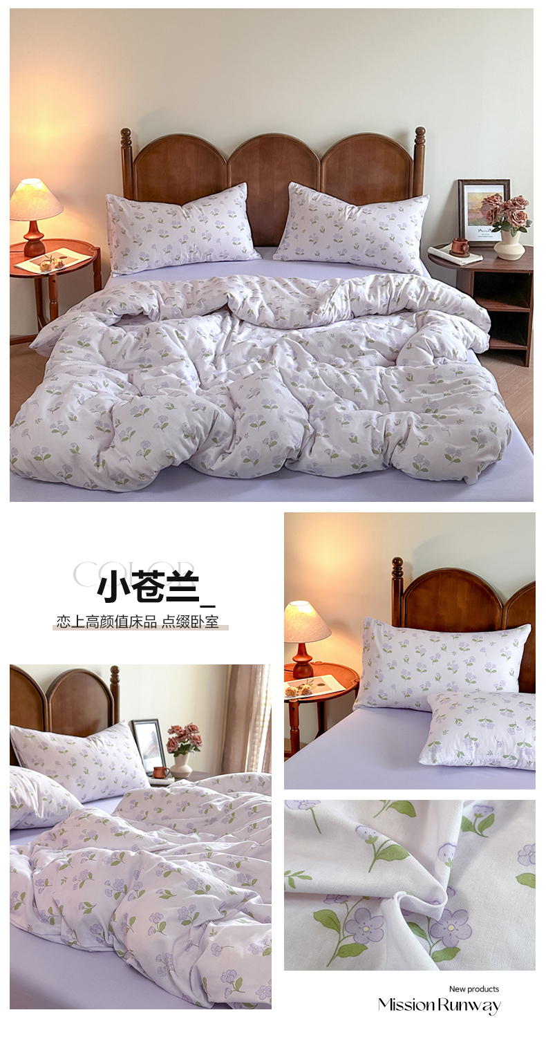当前位置: 91家纺网 > 商品网购 > 床品套件 > 四件套 > 全棉普通四件套 > 2025新款A类母婴级有氧全棉纯棉双层纱纯棉印花四件套 场景二 小苍兰