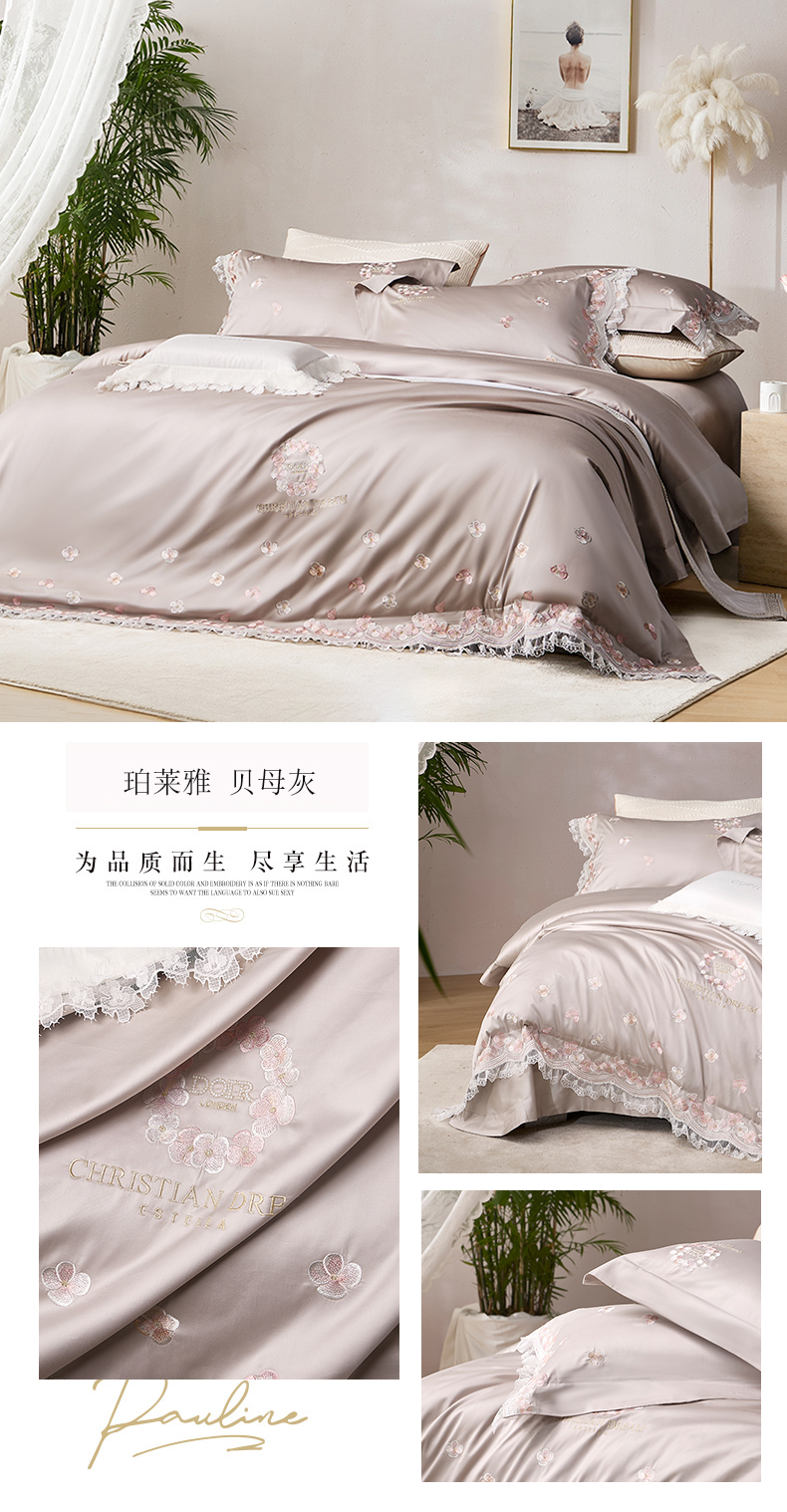 诗黛尔 2025新款长绒棉刺绣系列四件套-珀莱雅 珀莱雅-贝母灰