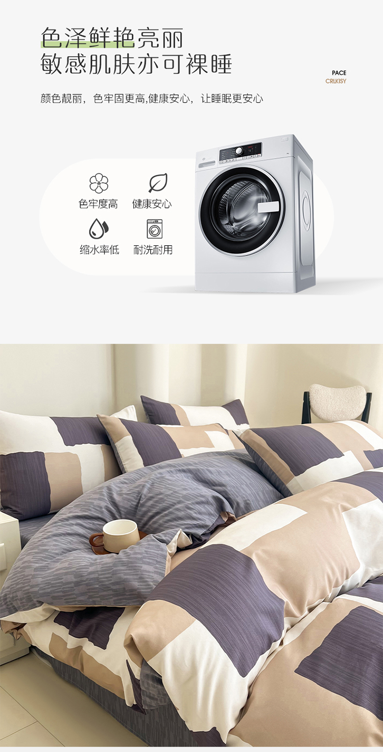 商品名称:2025春夏新款北欧风全棉纯棉印花四件套 奇块幻想