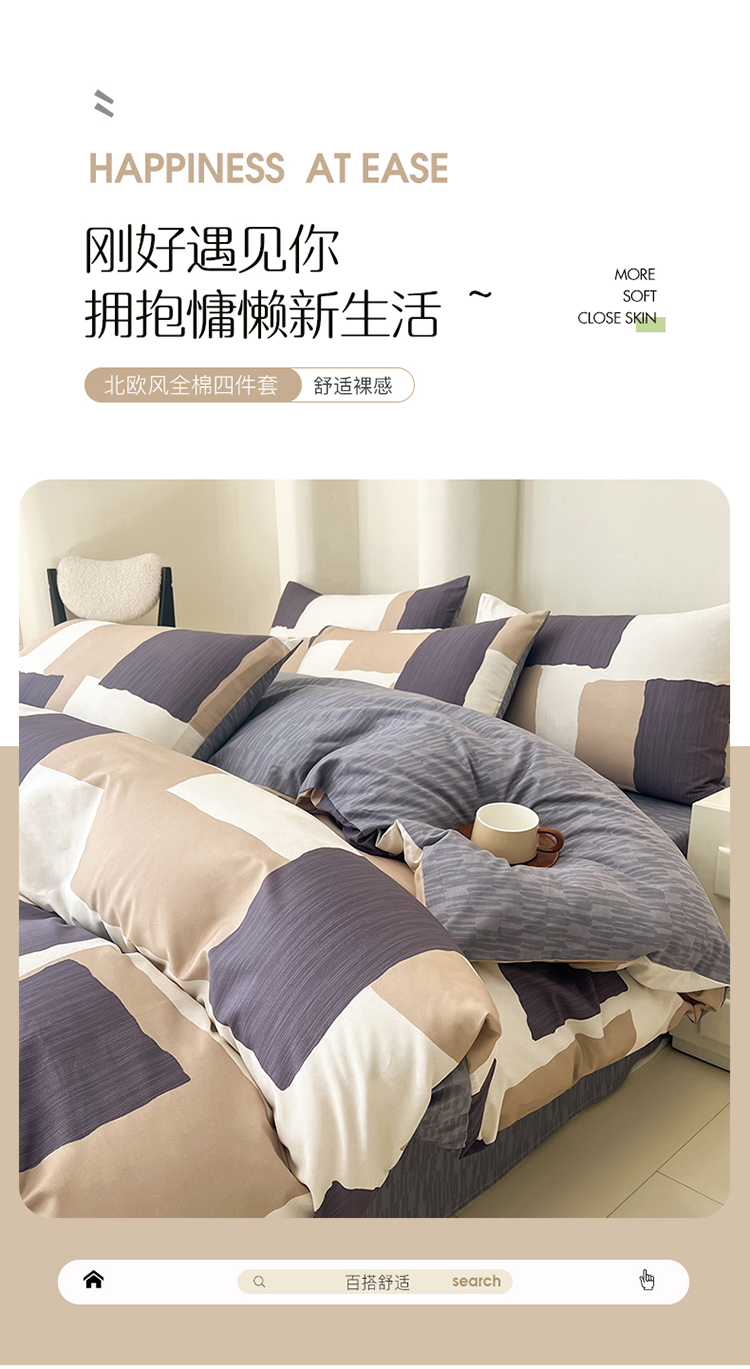 2025春夏新款北欧风全棉纯棉印花四件套 奇块幻想