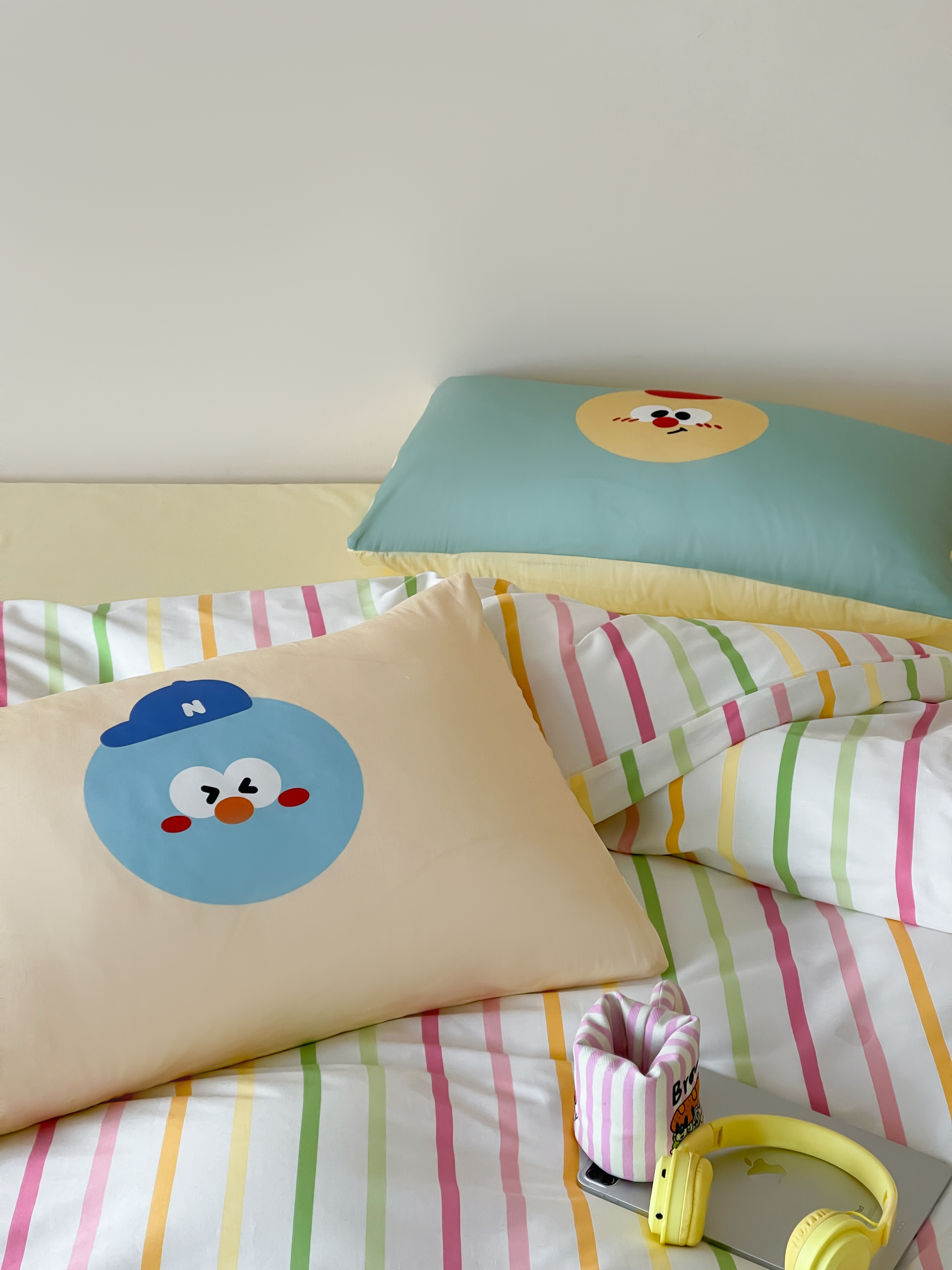 觅糖2025年全棉双数码枕套卡通印花混搭系列 七彩曲奇