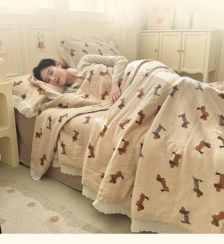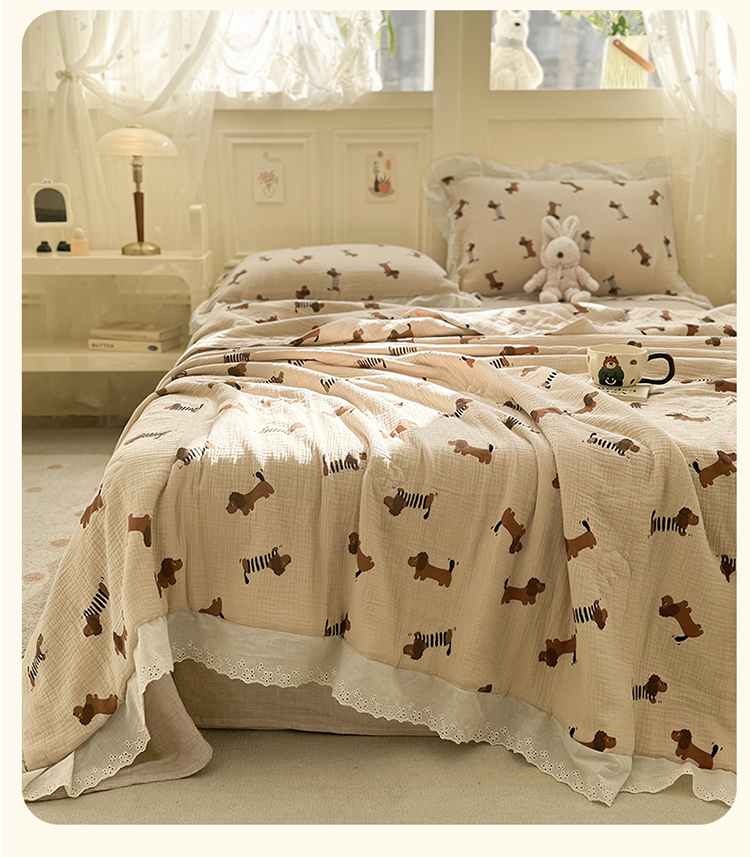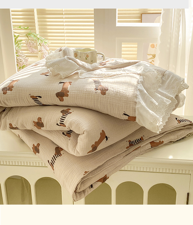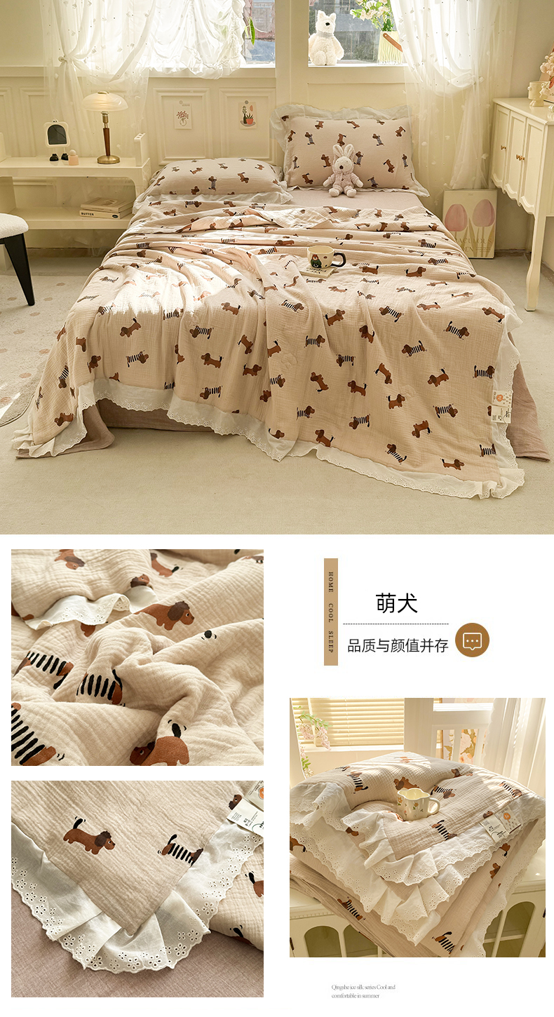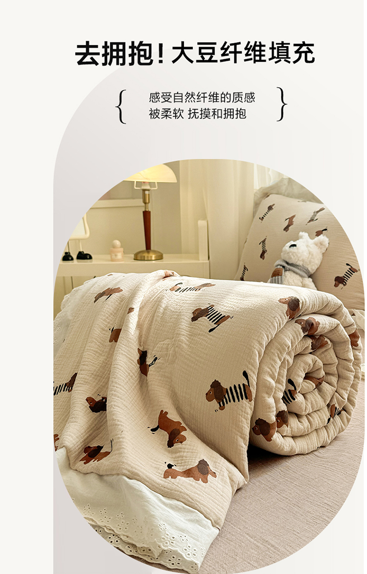 • 91家纺网 家纺一手货源 找家纺 2025新款全棉双层皱皱沙印花花边30%大豆夏凉被纯棉夏被被子被芯 萌犬