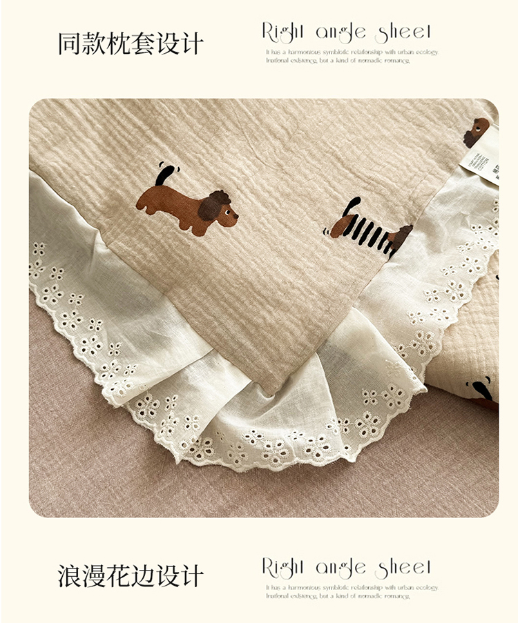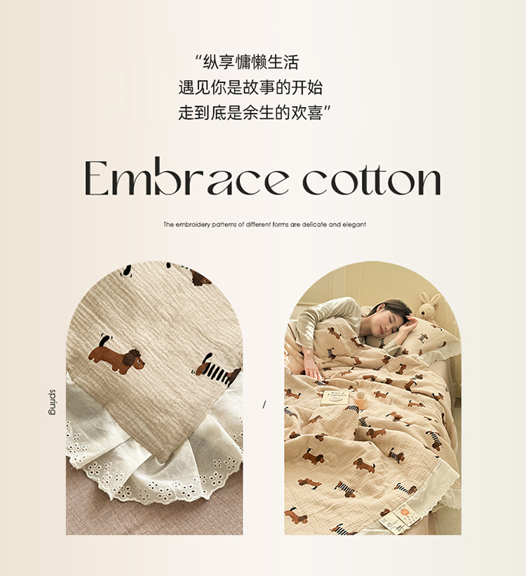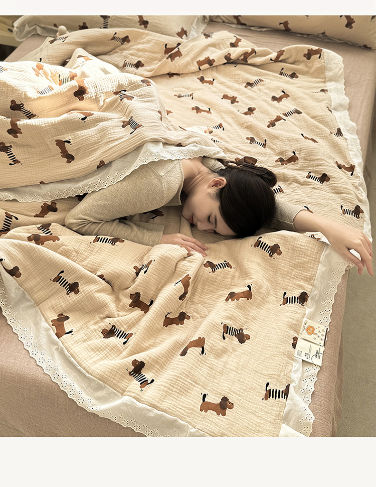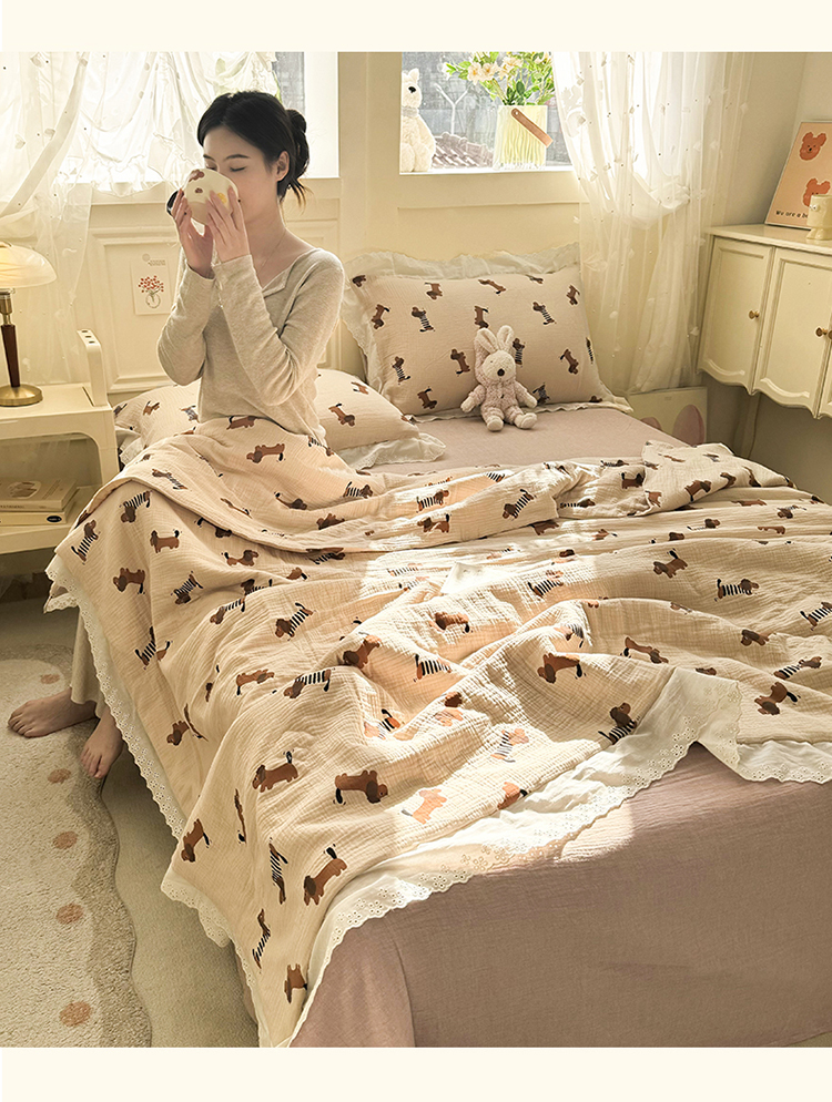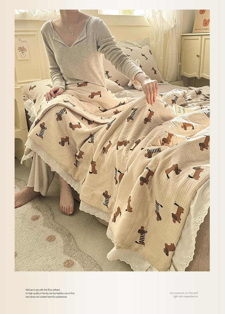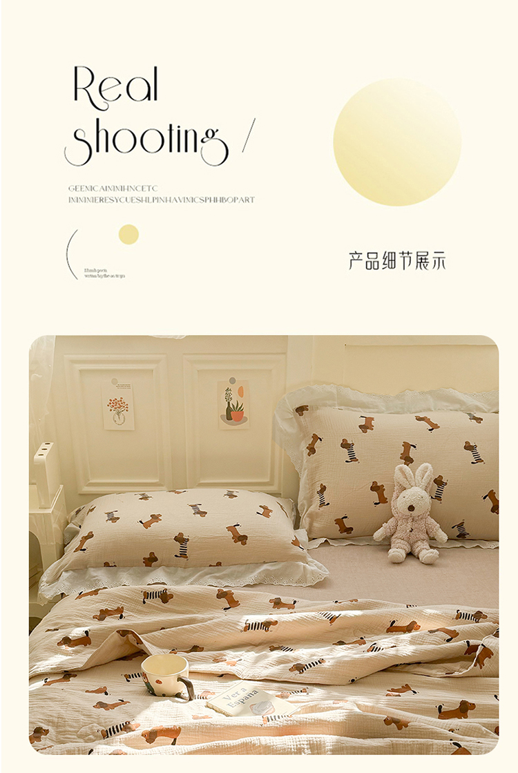 • 91家纺网 家纺一手货源 找家纺 2025新款全棉双层皱皱沙印花花边30%大豆夏凉被纯棉夏被被子被芯 萌犬