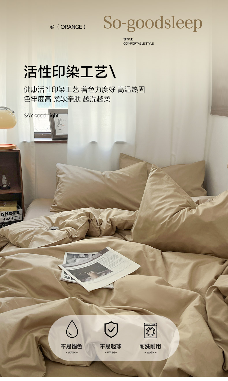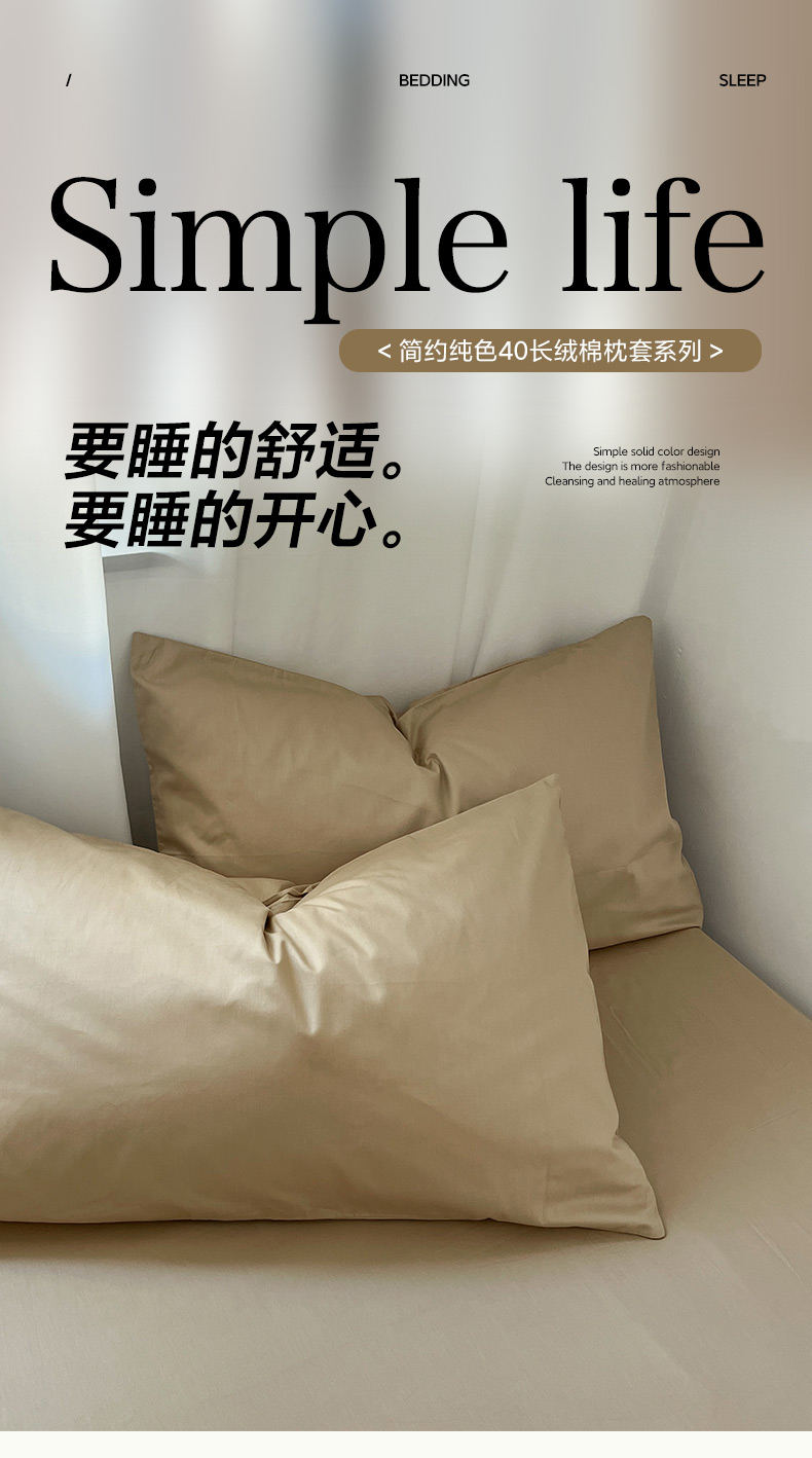 商品名称:2025新款40长绒棉ins美拉德色系纯色全棉单品四件套床笠四件套系列--单枕套 奶茶色