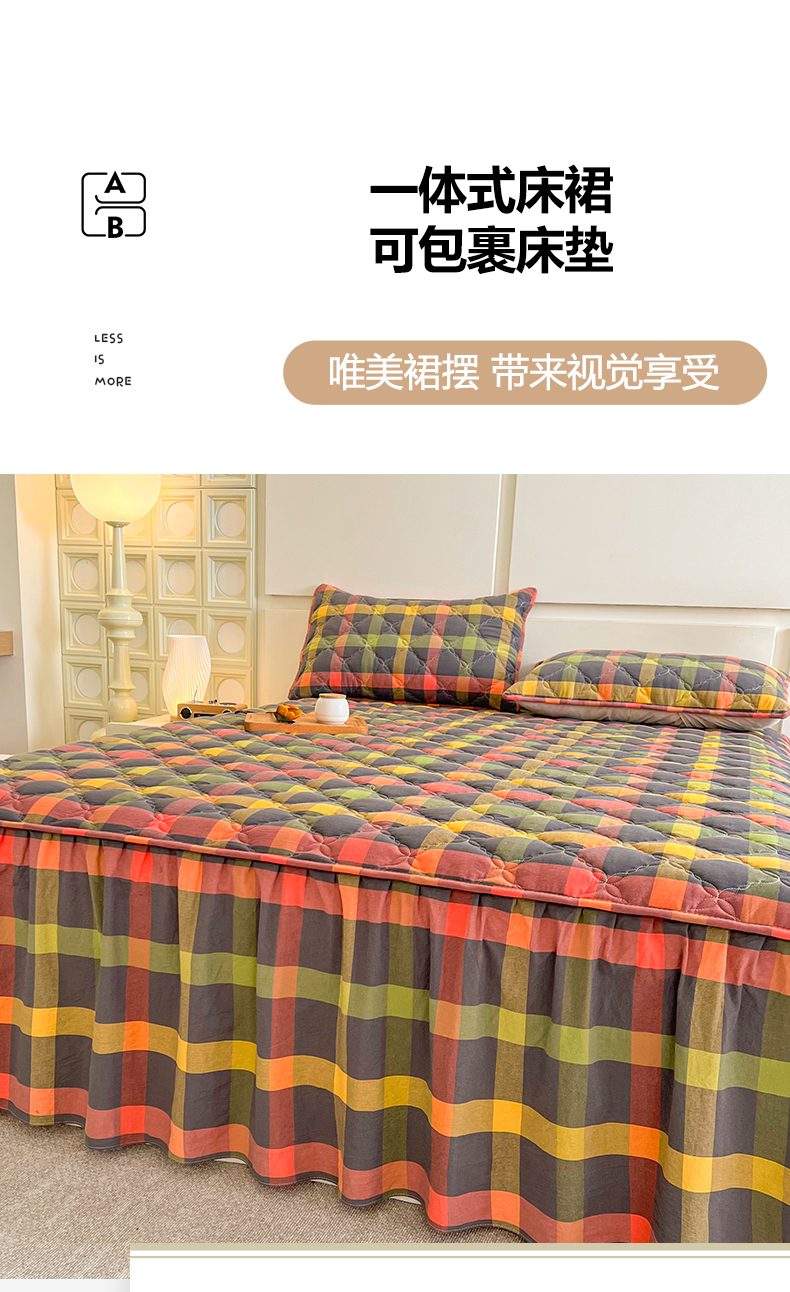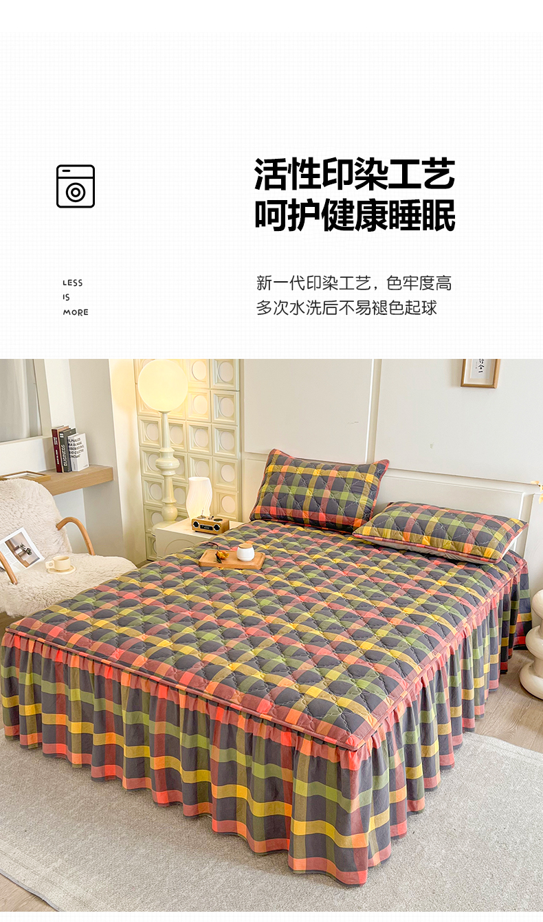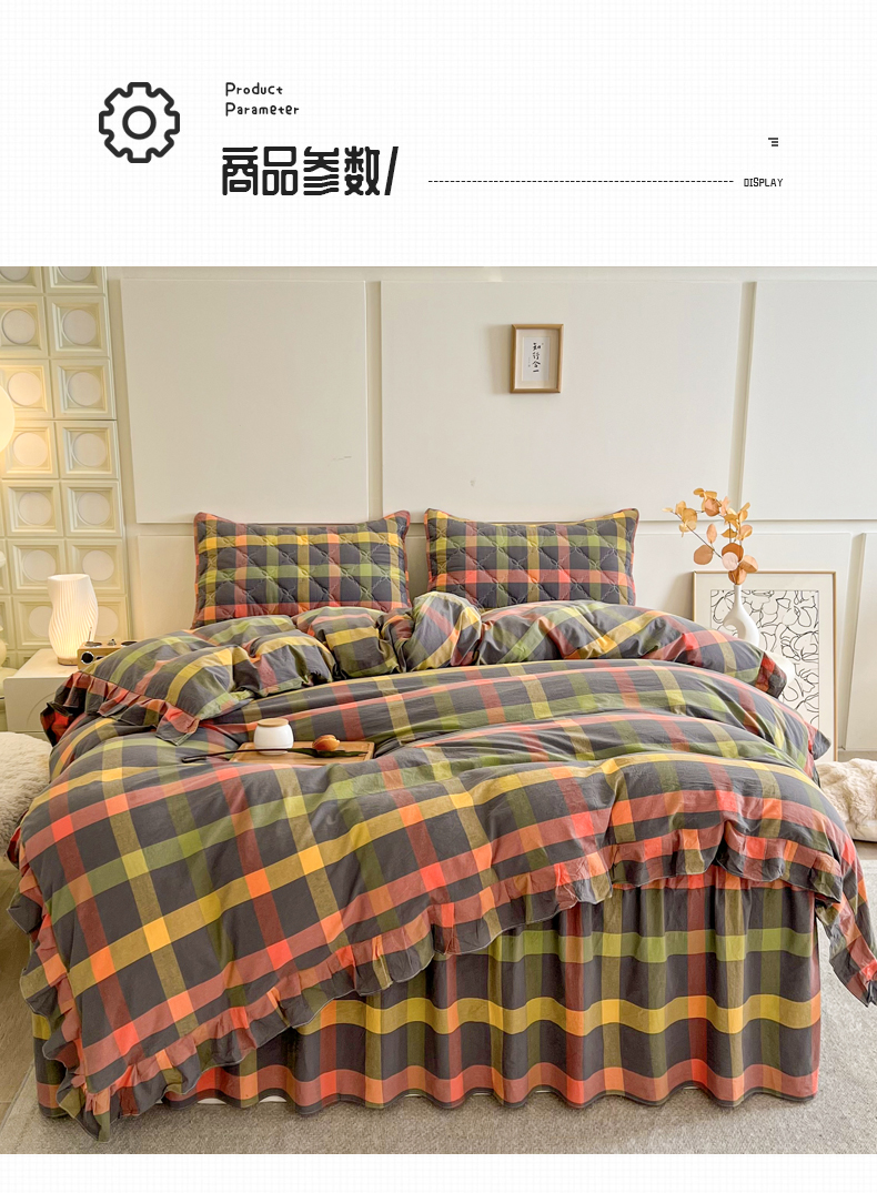 (总)糯米猪家纺 2025新款全棉色织水洗棉床裙,格纹 灰,简兮 兰,兰黄大格,晴空 灰,时尚 灰,雅致 兰