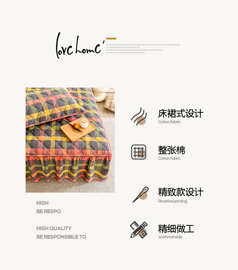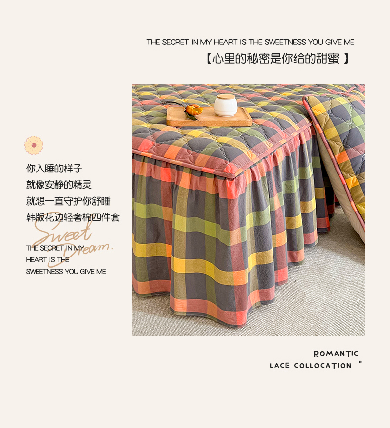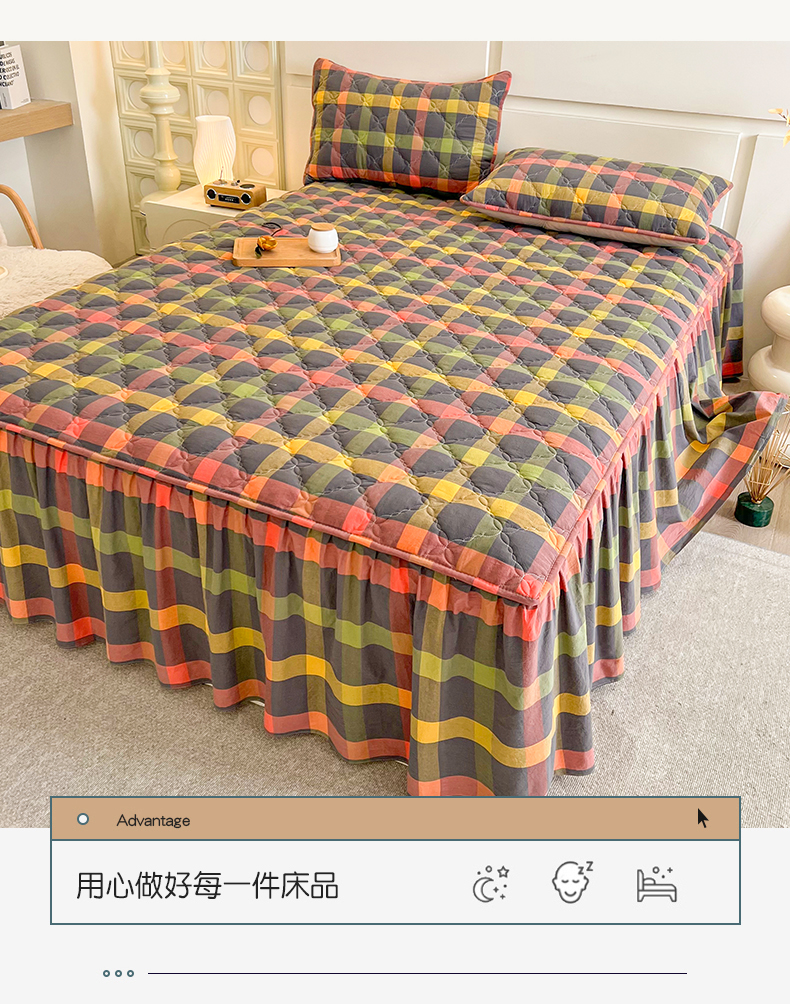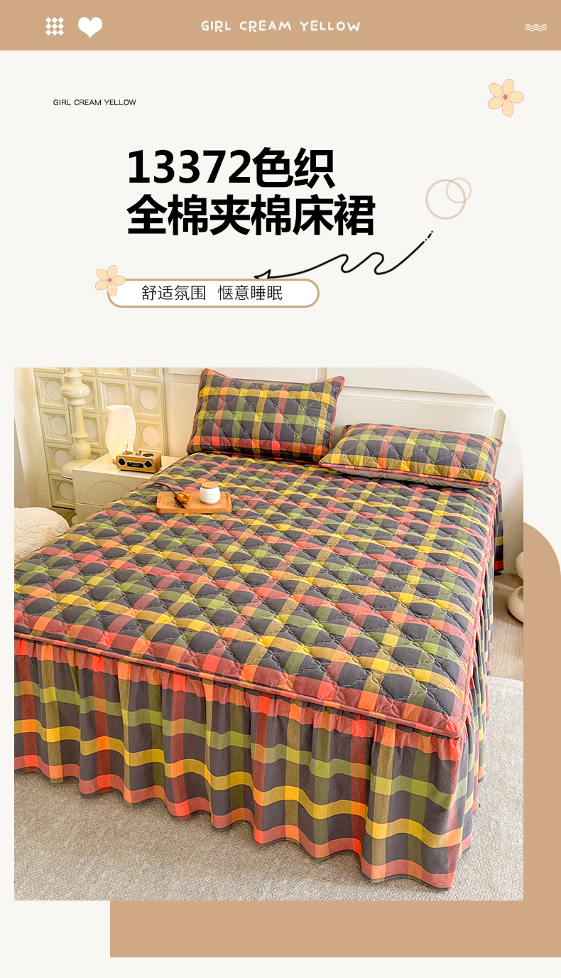 (总)糯米猪家纺 2025新款全棉色织水洗棉床裙,格纹 灰,简兮 兰,兰黄大格,晴空 灰,时尚 灰,雅致 兰