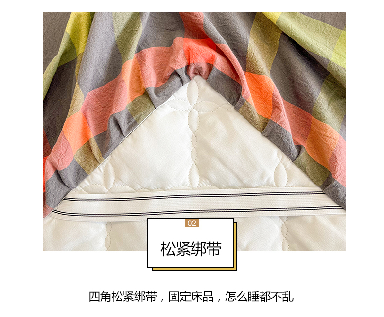 (总)糯米猪家纺 2023新款亲肤棉六面全包夹棉床笠--时尚格,水蓝,深蓝,灰色,白色,米色,粉玉