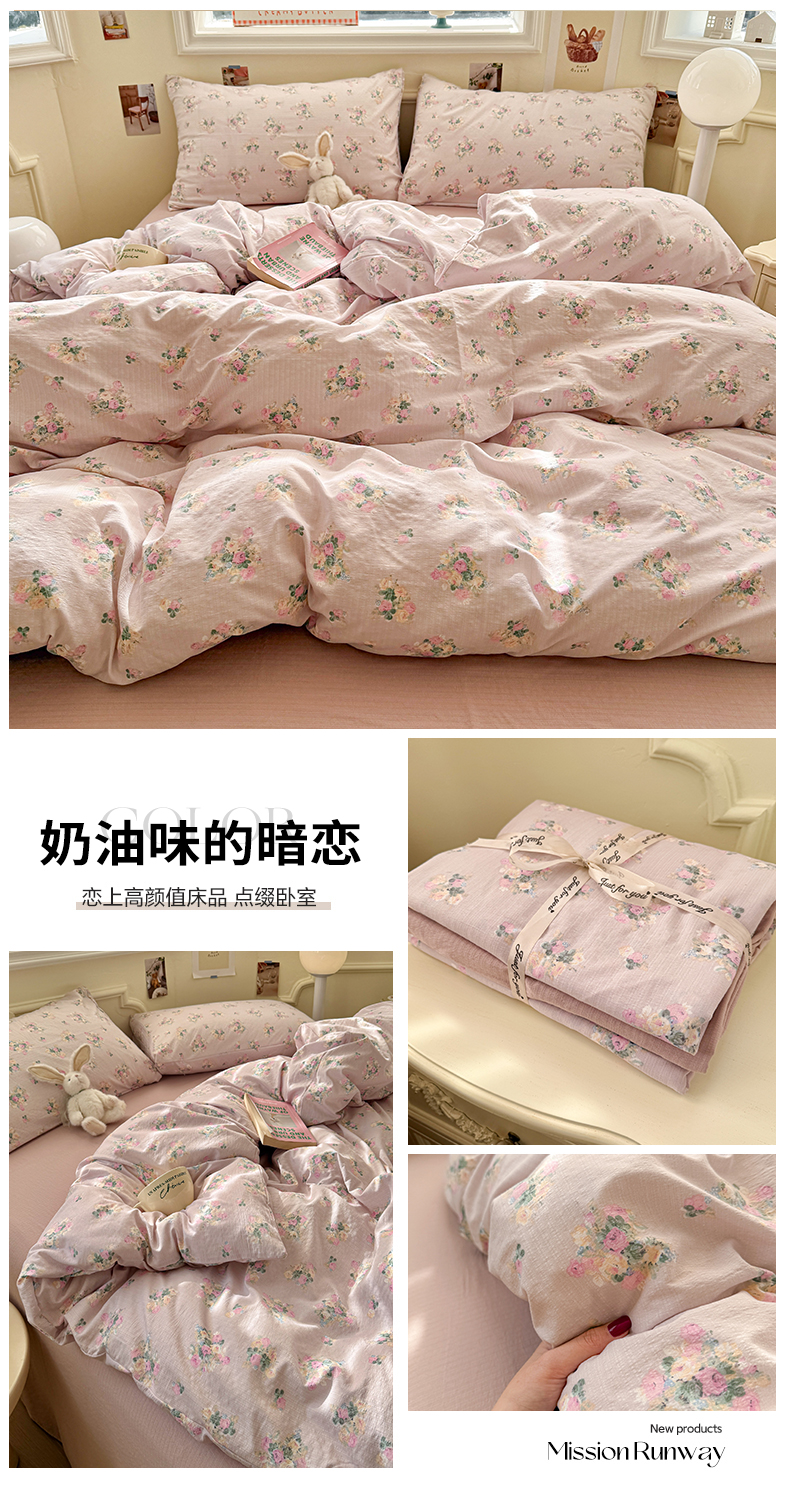 当前位置: 91家纺网 > 商品网购 > 床品套件 > 四件套 > 双层纱四件套 > 罗亿家纺 2025新款云感提花双层纱裸睡四件套 奶油味的暗恋