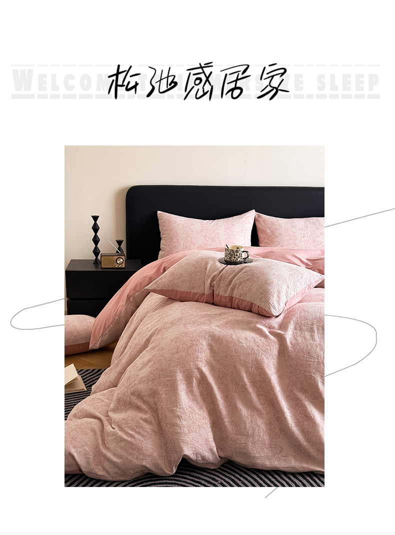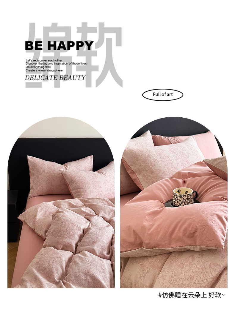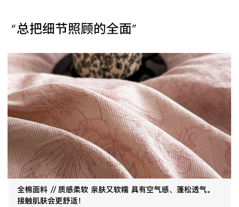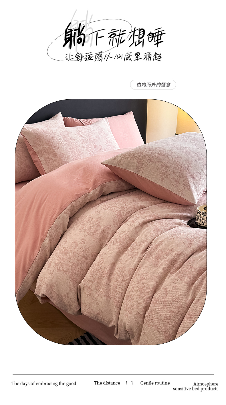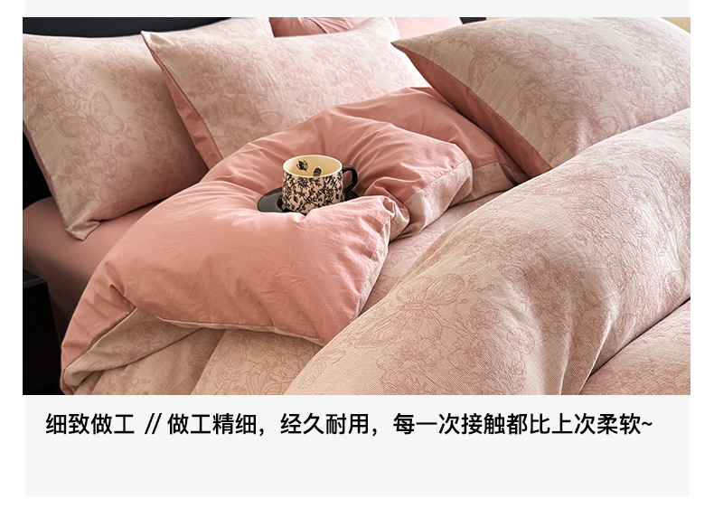 商品名称:水云缦 2025新款水云缦全棉三层纱色织大提花四件套 蝶飞若舞-粉
