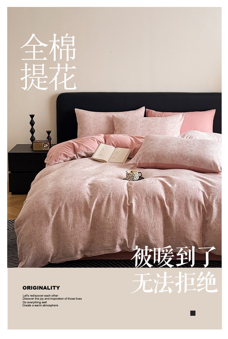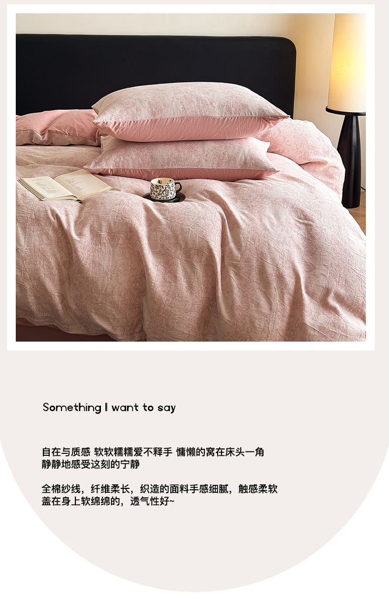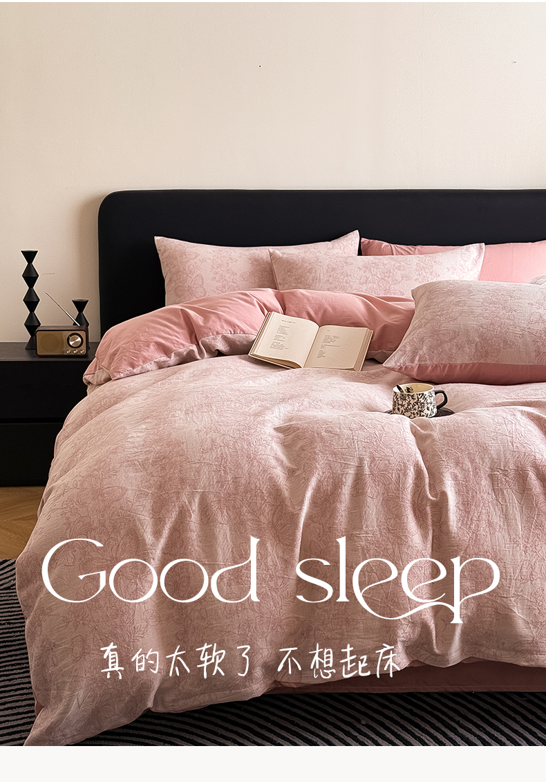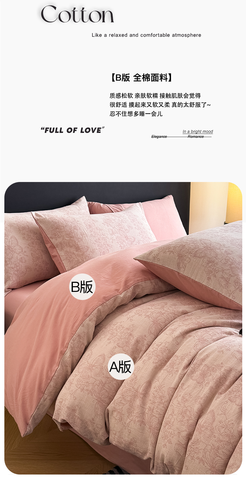 商品名称:水云缦 2025新款水云缦全棉三层纱色织大提花四件套 蝶飞若舞-粉