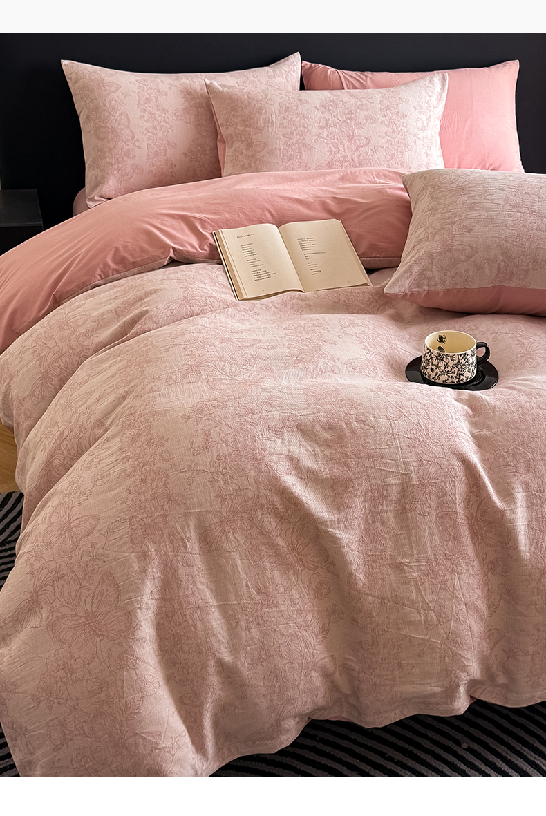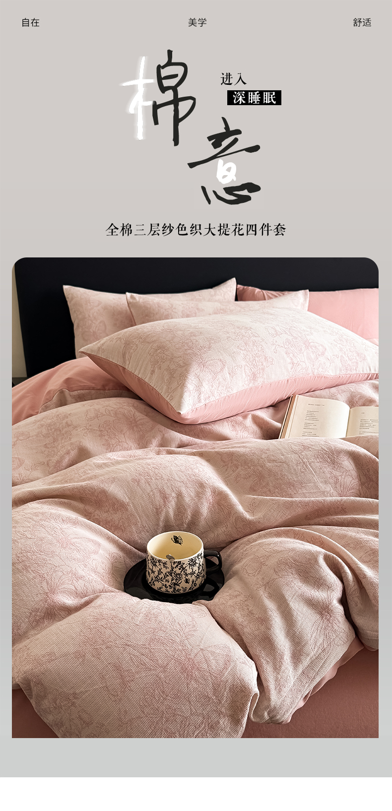 水云缦 2025新款水云缦全棉三层纱色织大提花四件套 蝶飞若舞-粉