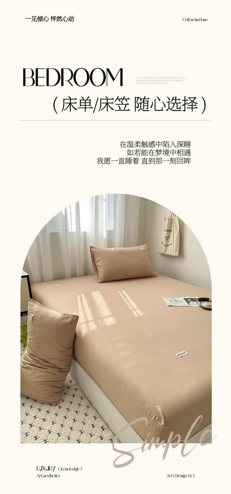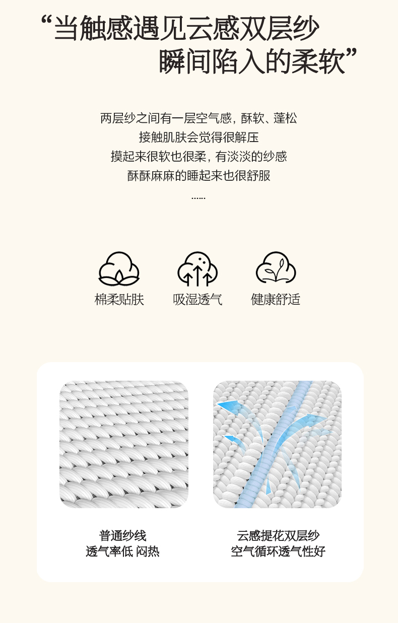 商品名称:罗亿家纺 2025新款云感提花双层纱单床笠 浅豆沙床笠