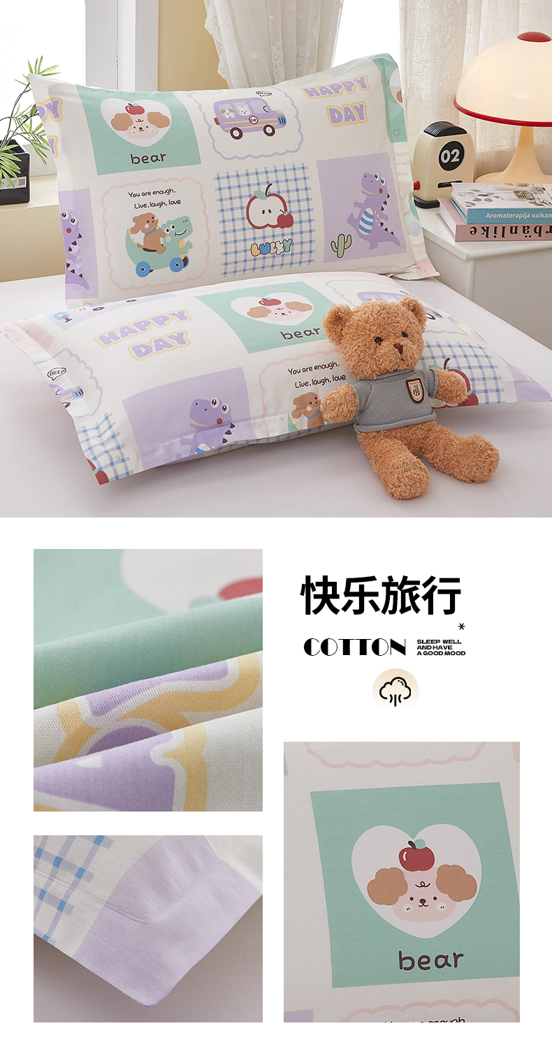 商品名称: 翎盈家纺 2025新款ins风小清新纯棉印花枕套 快乐旅行
