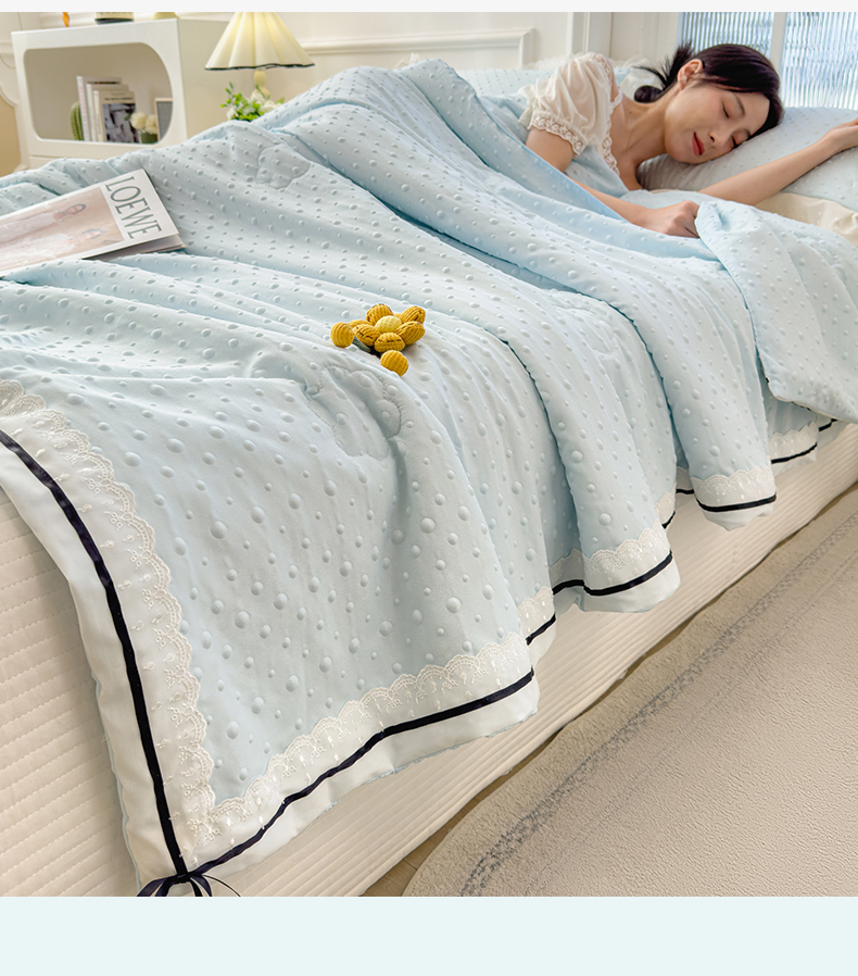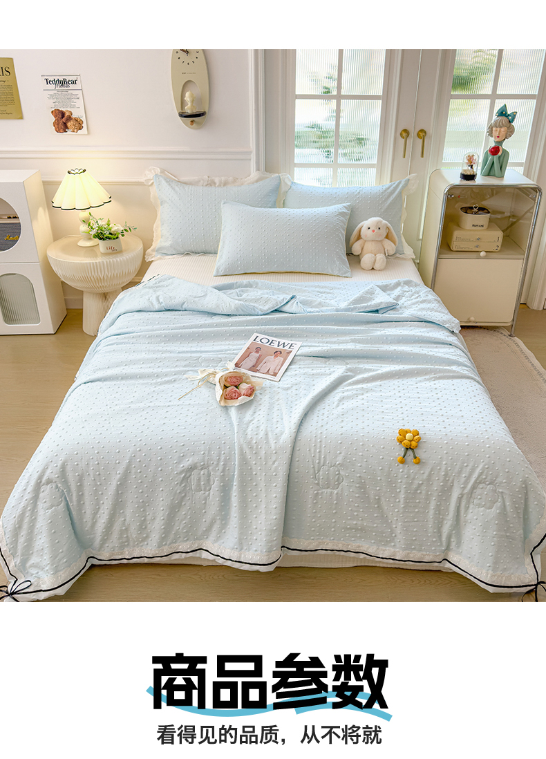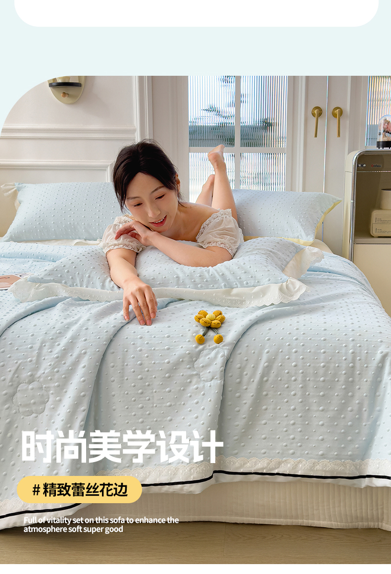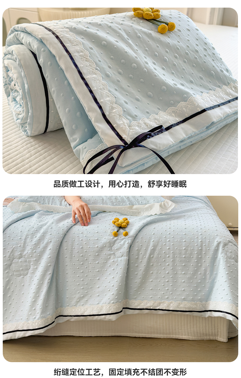 商品名称:兄弟坊 2025新款韩版针织泡泡纱花边夏被夏凉被 小花-天空蓝