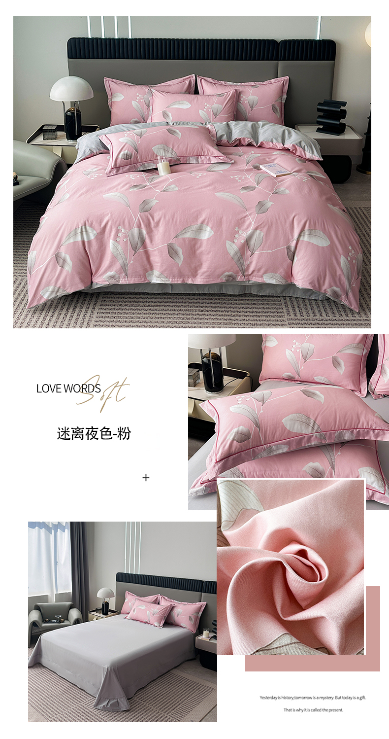 当前位置: 91家纺网 > 商品网购 > 床品套件 > 四件套 > 全棉普通四件套 > 眷恋家纺 2025年春夏全棉铂金棉13376数码印花四件套 迷离夜色-粉