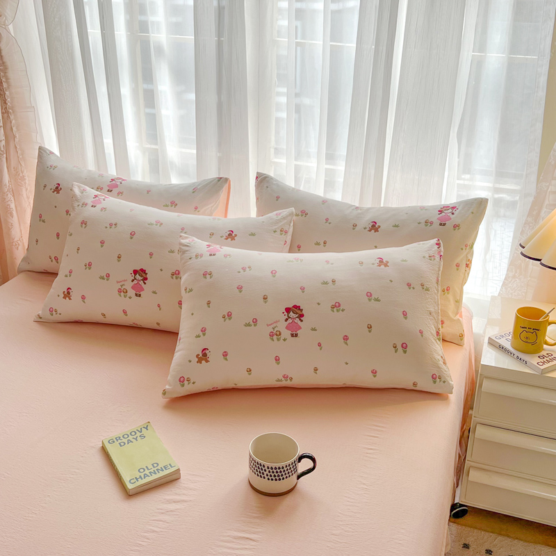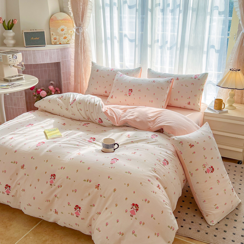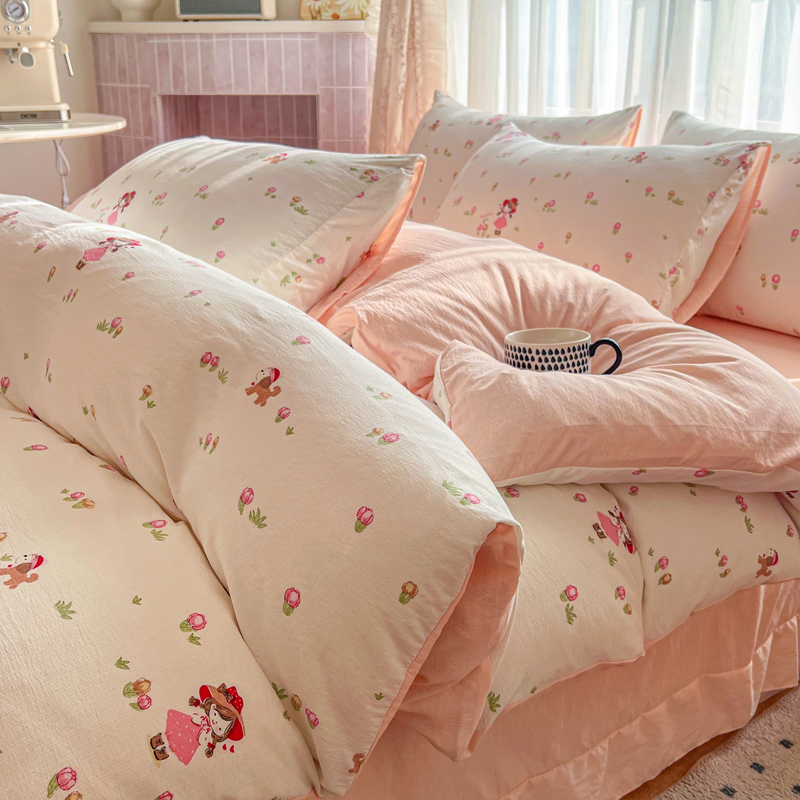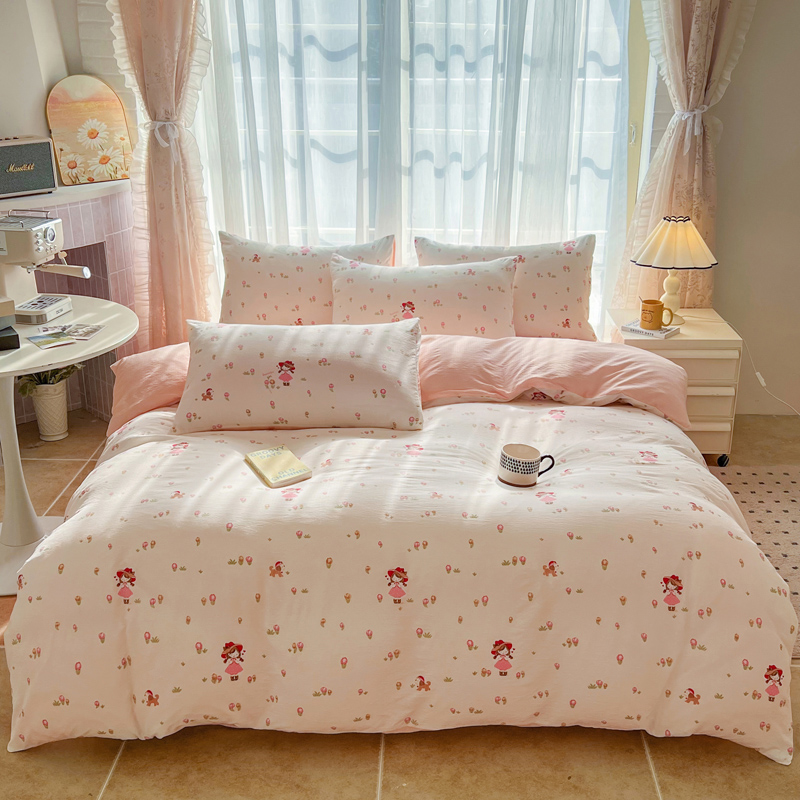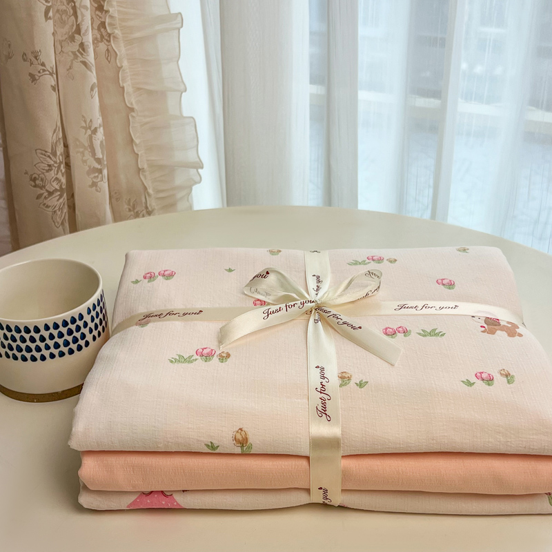 暖伊家居 2025新款A类针织双层纱四件套 甜也,甜也