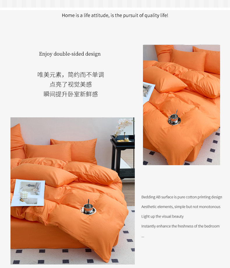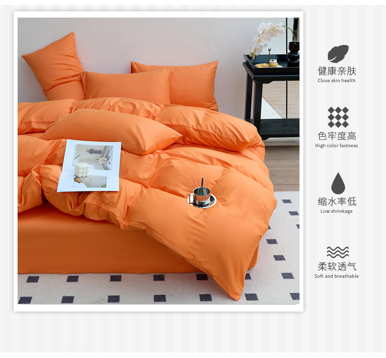 (总)期遇2025新款全棉13374纯色四件套,粉玉,海棠红,幻影灰,橘黄,卡其,嫩绿,苹果绿,青蓝,香芋紫,洋红