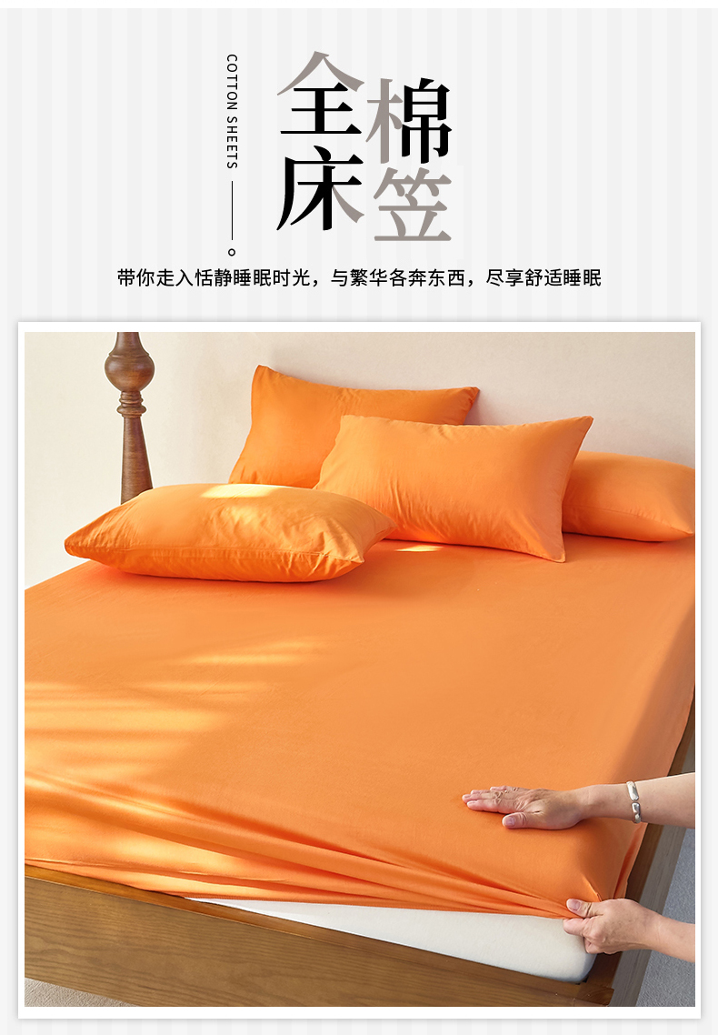 商品名称:期遇2025新款13374纯色全棉床笠 橘黄
