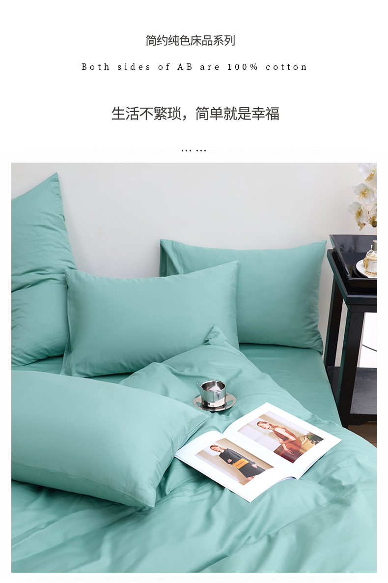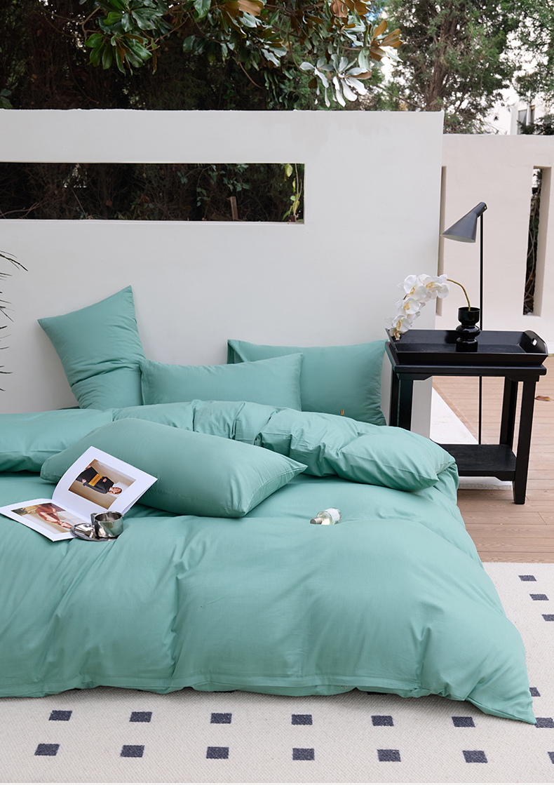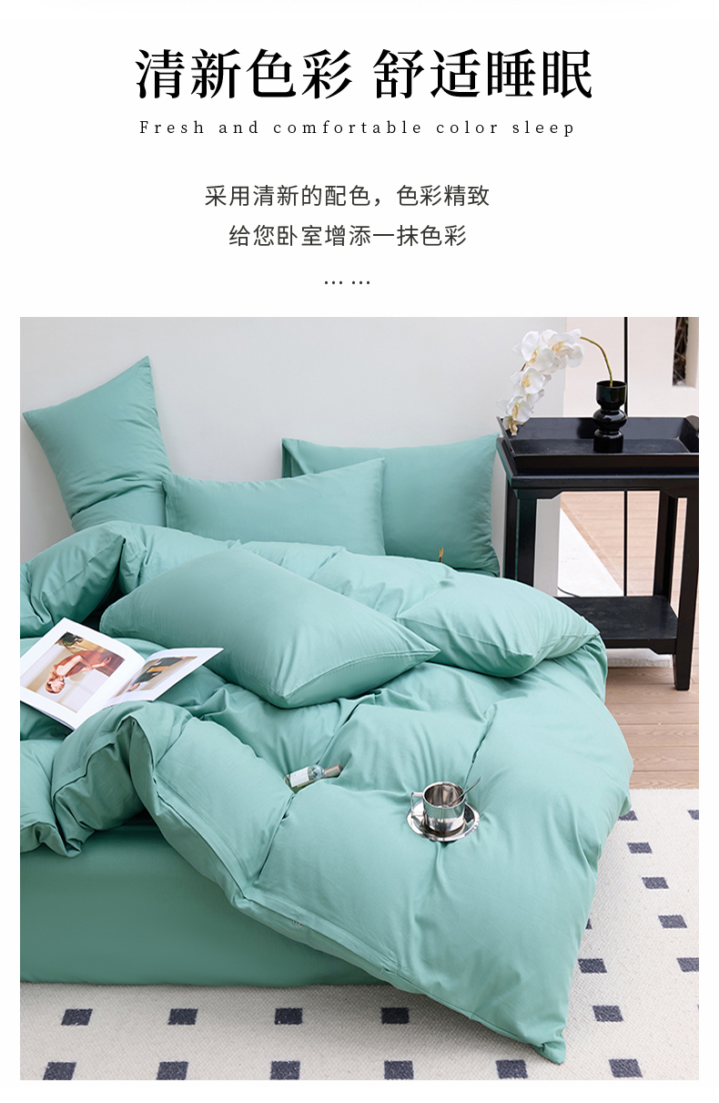 期遇2025新款全棉13374纯色四件套 苹果绿