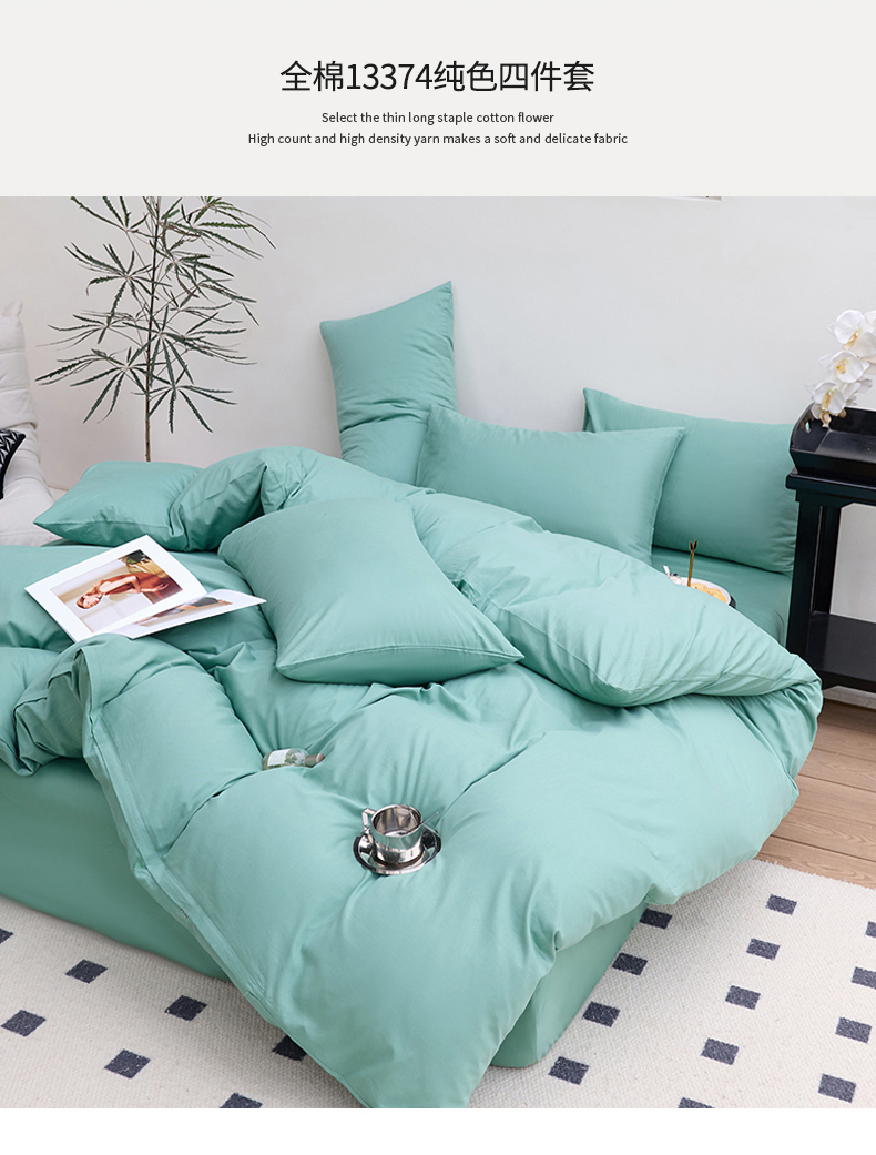 (总)期遇2025新款全棉13374纯色四件套,粉玉,海棠红,幻影灰,橘黄,卡其,嫩绿,苹果绿,青蓝,香芋紫,洋红