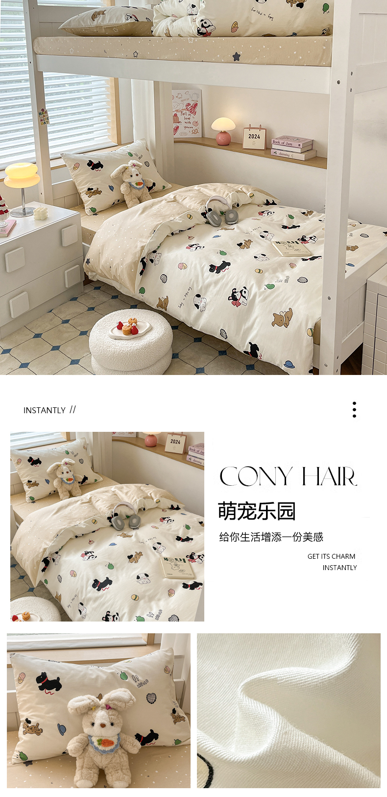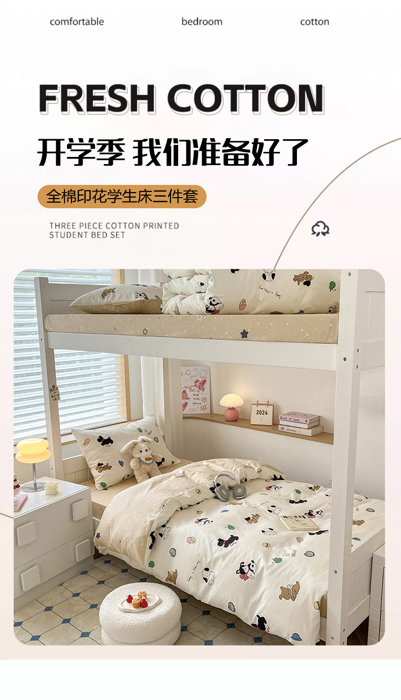 当前位置: 91家纺网 > 商品网购 > 床品套件 > 三件套 > 慕尚家纺 2025新款全棉印花学生三件套套件 萌宠乐园