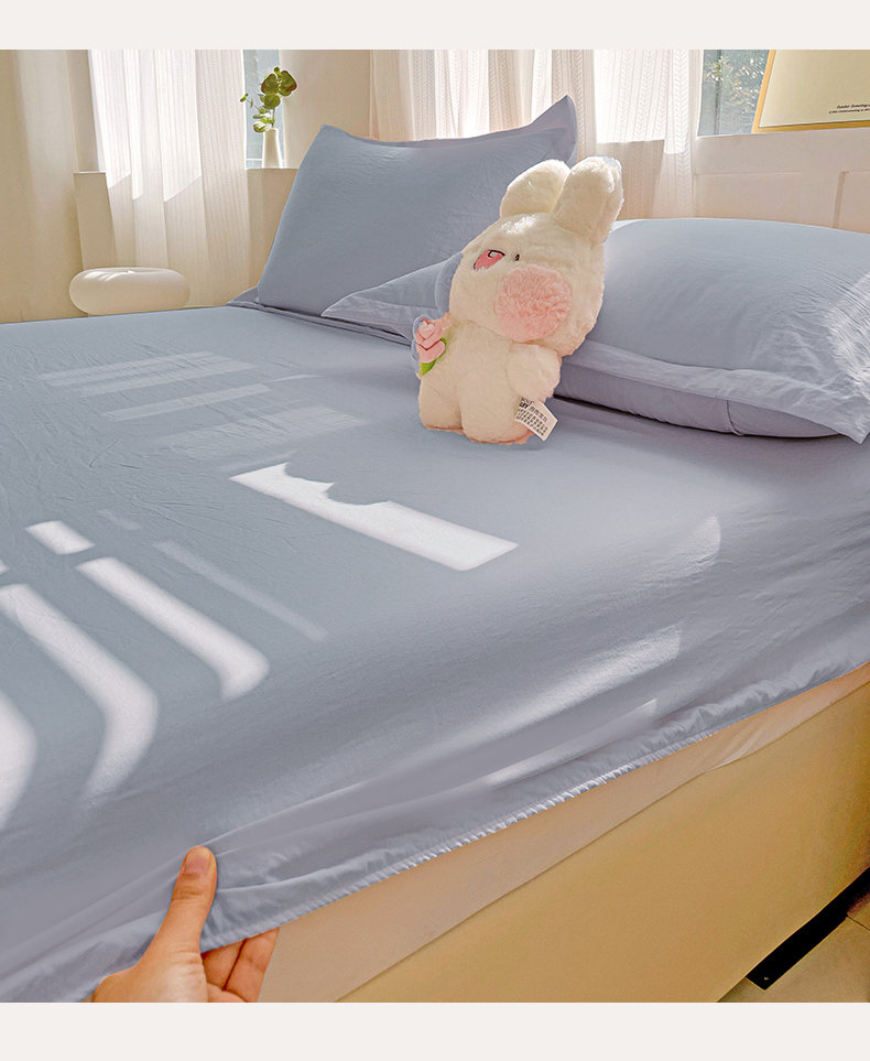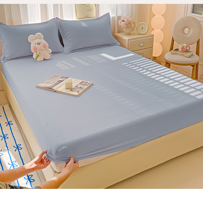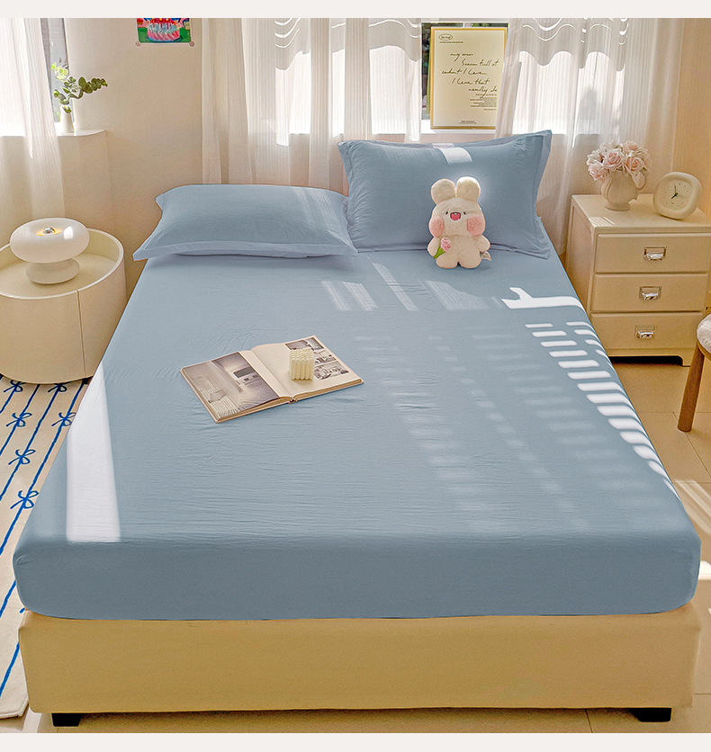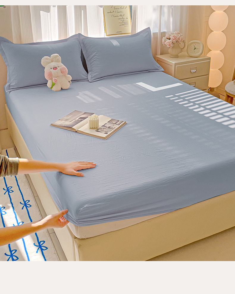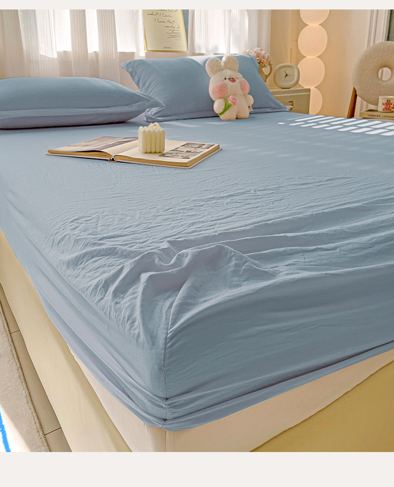 恬澳家纺 2025新款森系水洗棉无印风单床笠场景二 森系-雾蓝