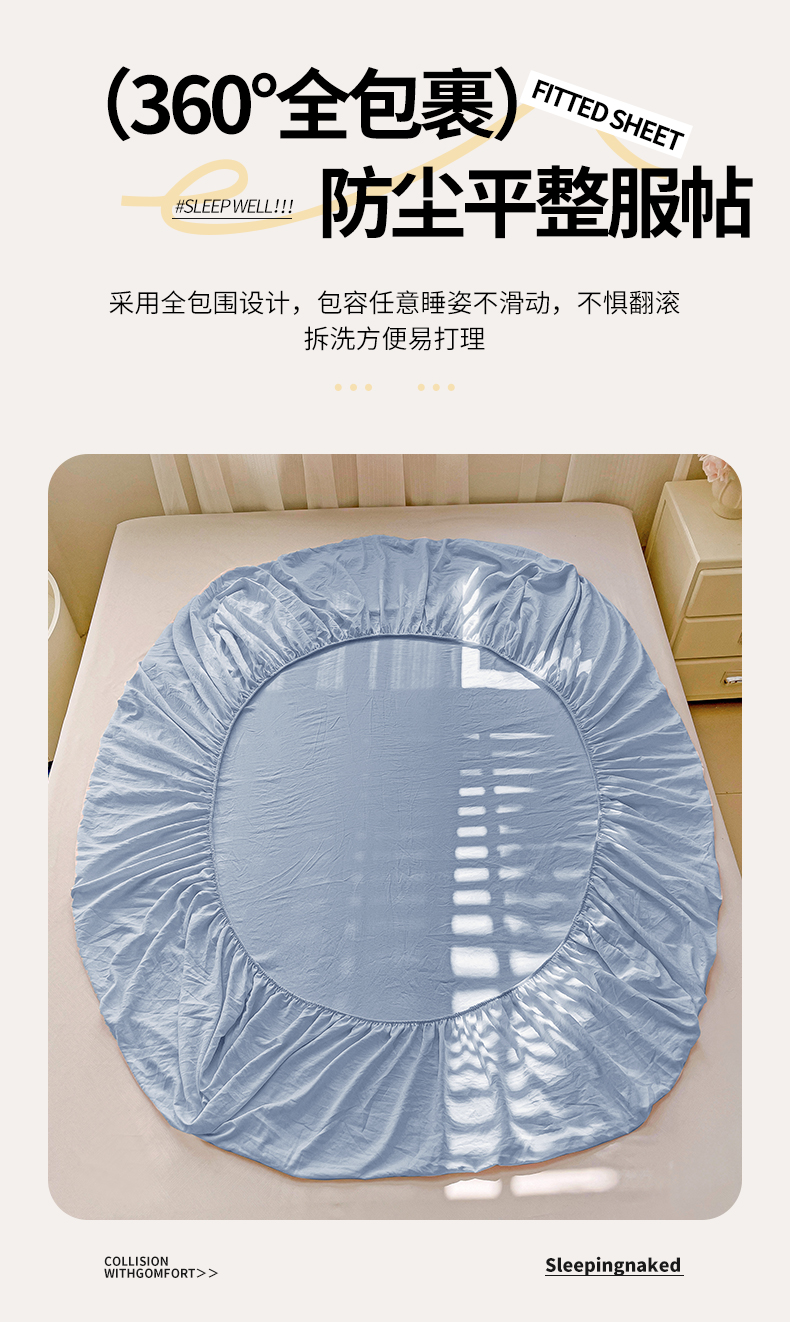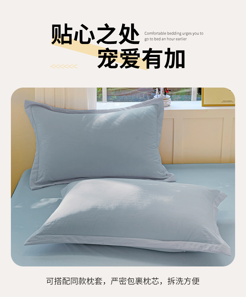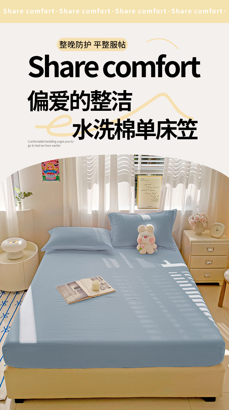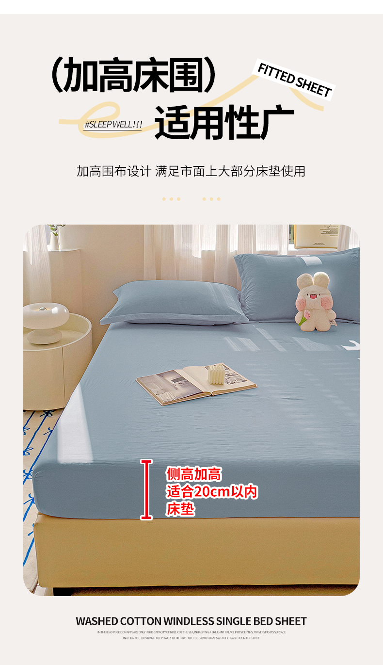 恬澳家纺 2025新款森系水洗棉无印风单床笠场景二 森系-雾蓝