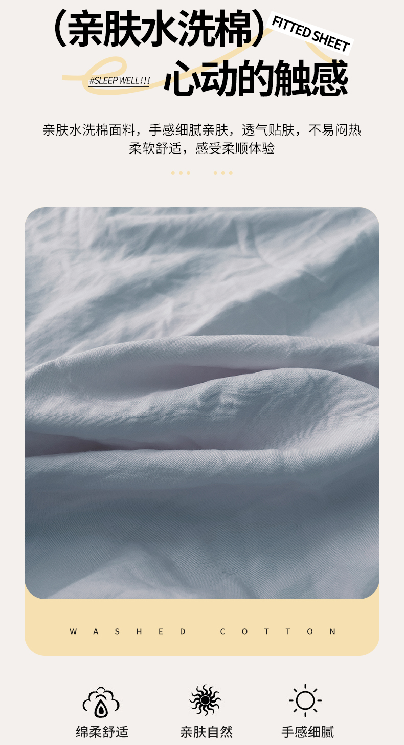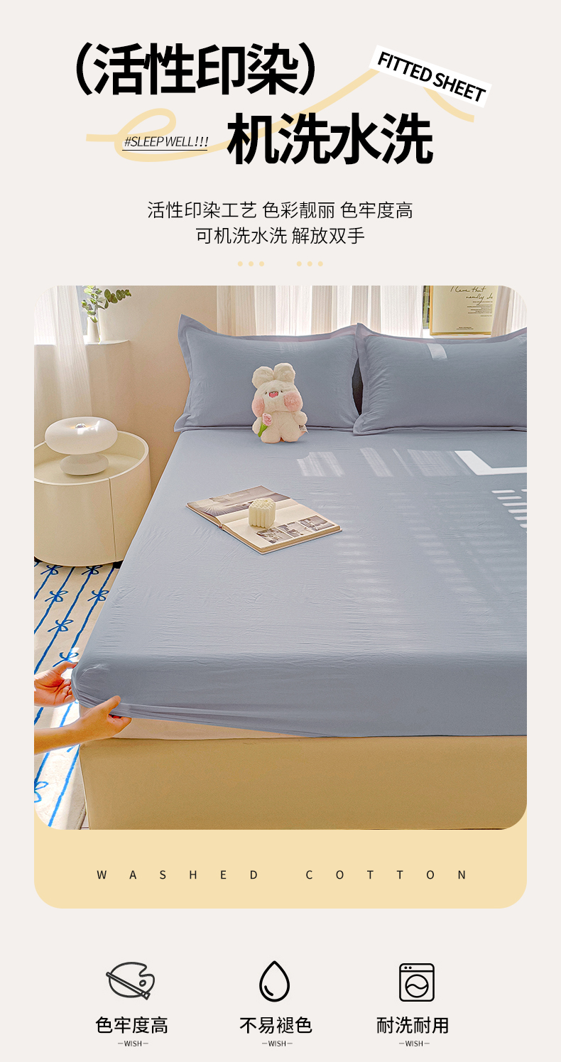 商品名称:恬澳家纺 2025新款森系水洗棉无印风单床笠场景二 森系-雾蓝