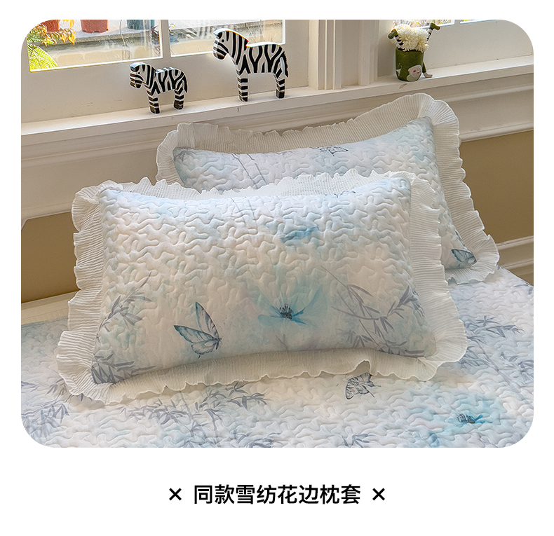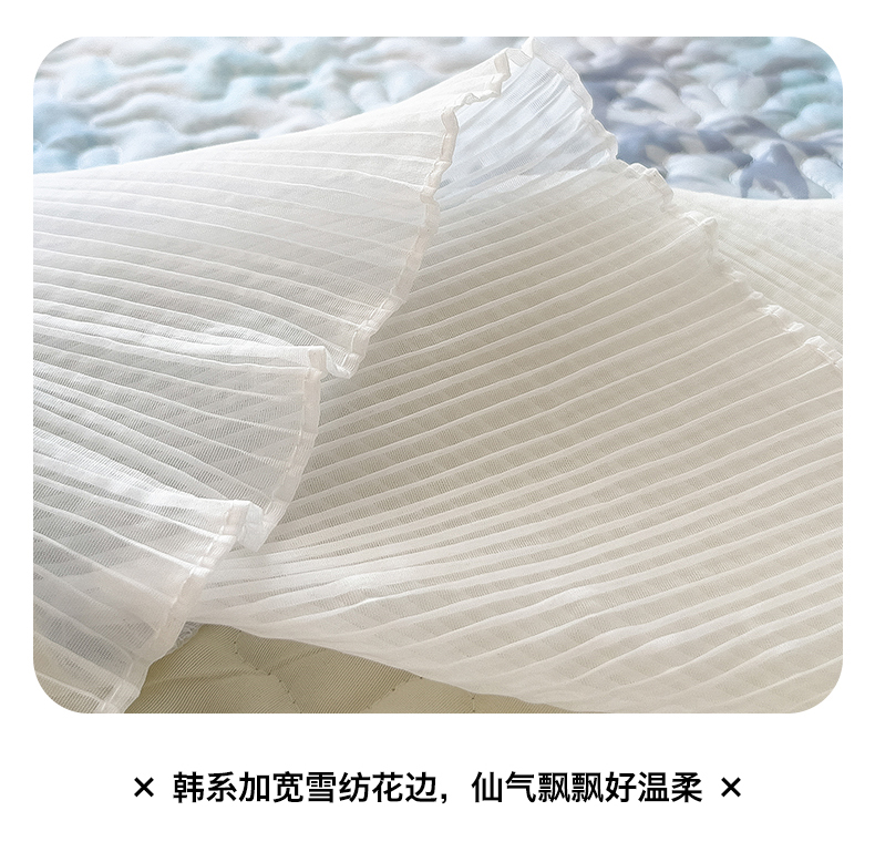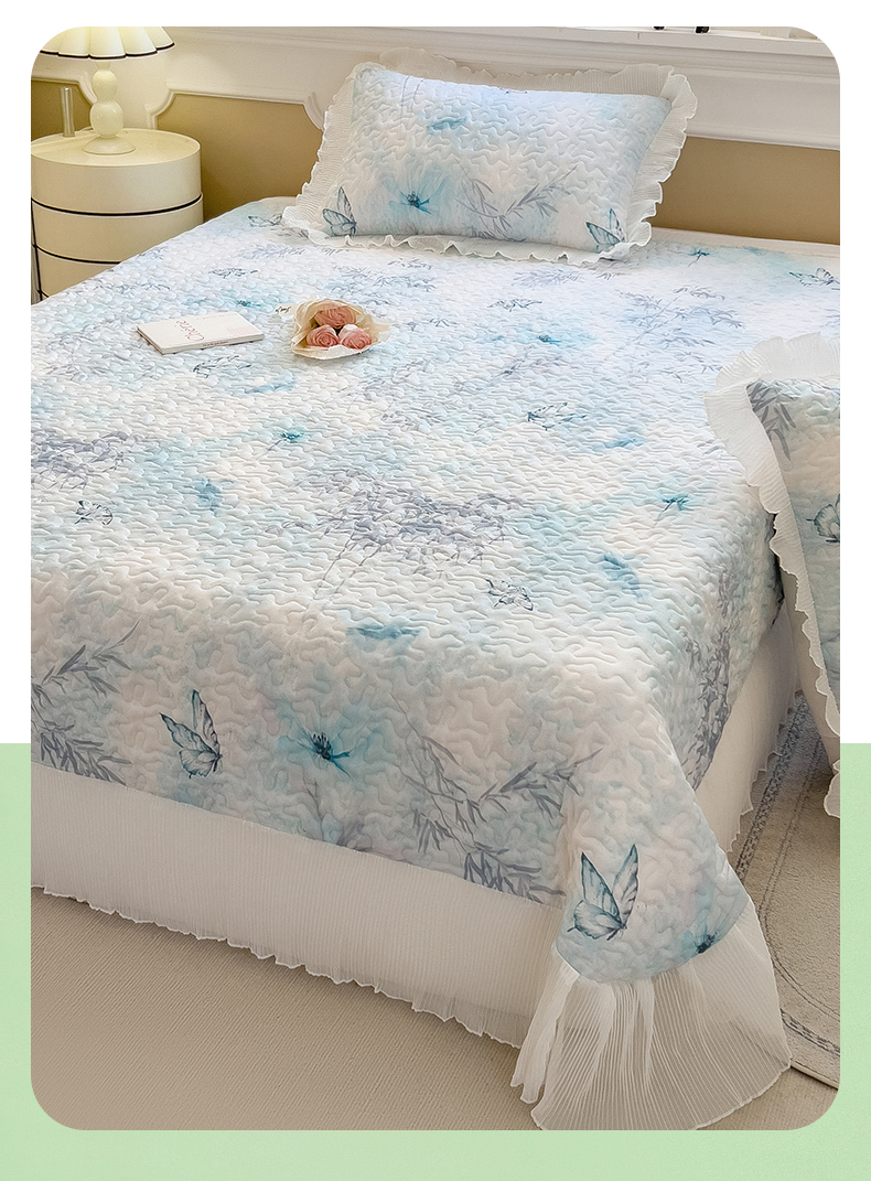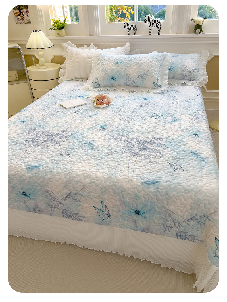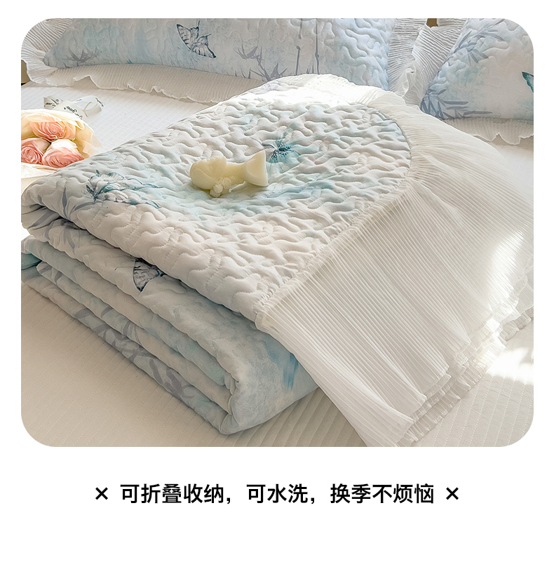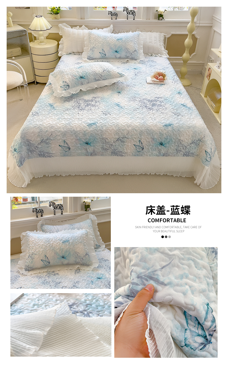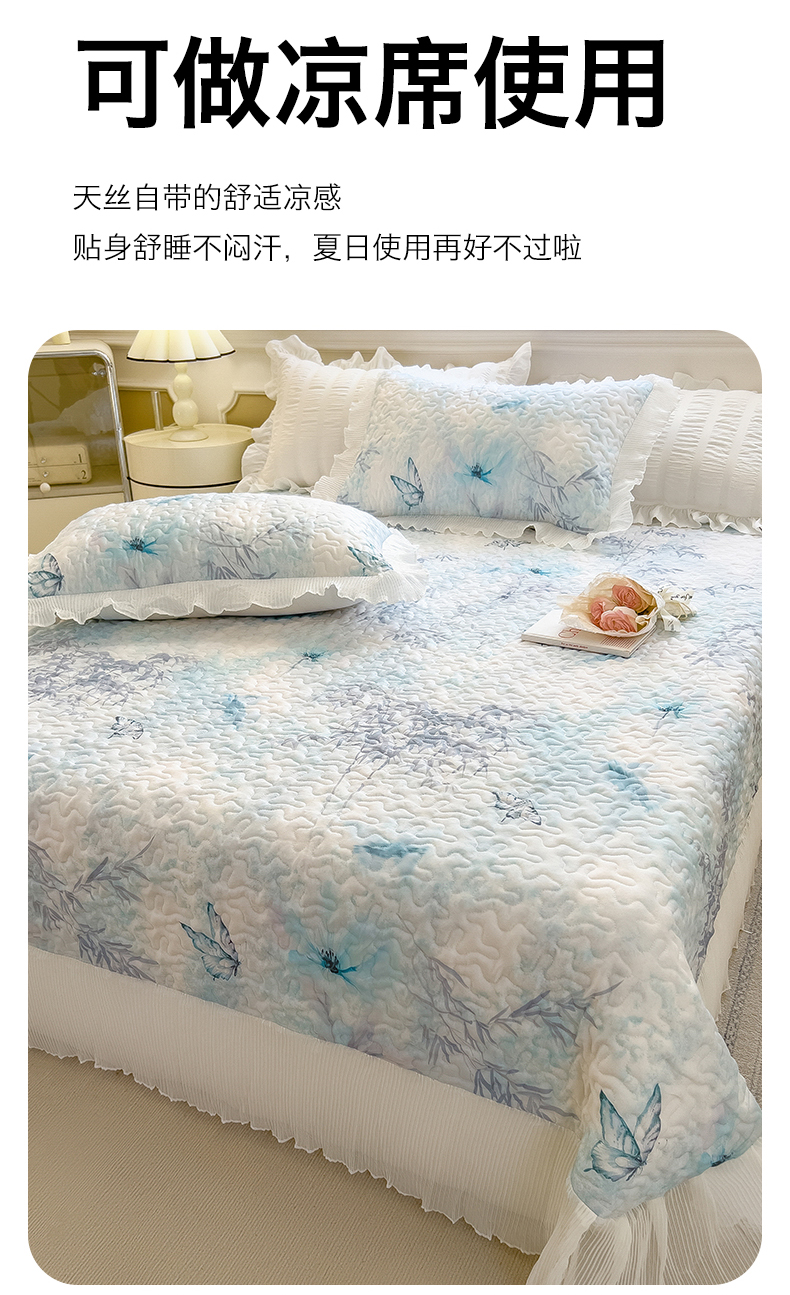 商品名称:迪梦思家纺 2025新款A类莱赛尔兰精天丝韩版印花床盖床裙床褥夏被 床盖-蓝蝶