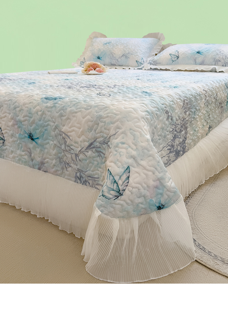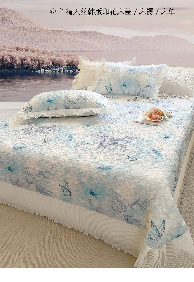迪梦思家纺 2025新款A类莱赛尔兰精天丝韩版印花床盖床裙床褥夏被 床盖-蓝蝶