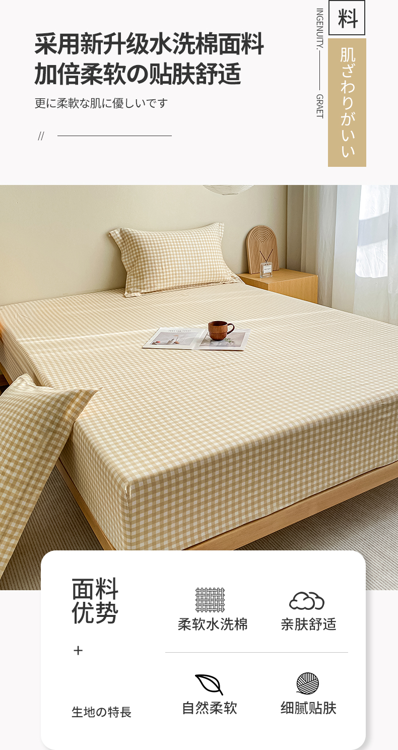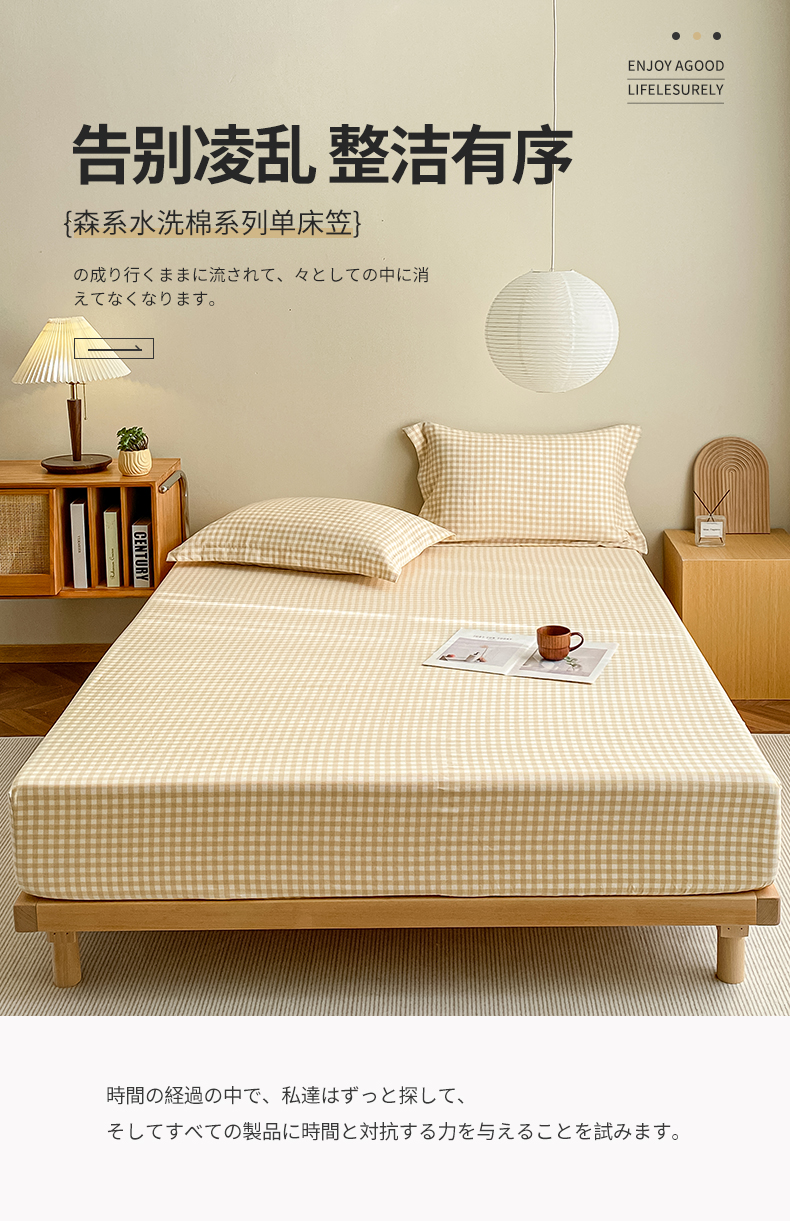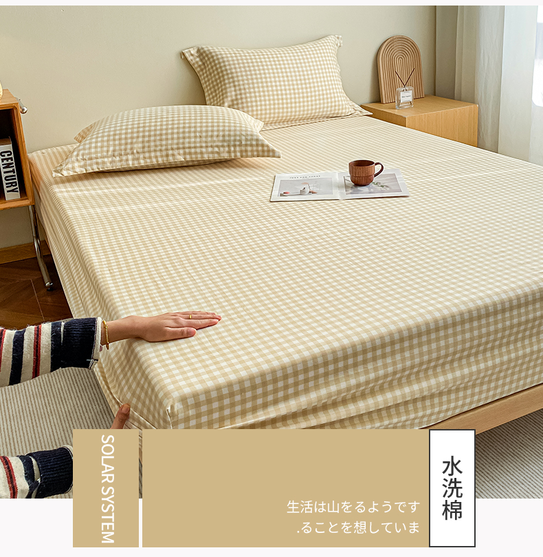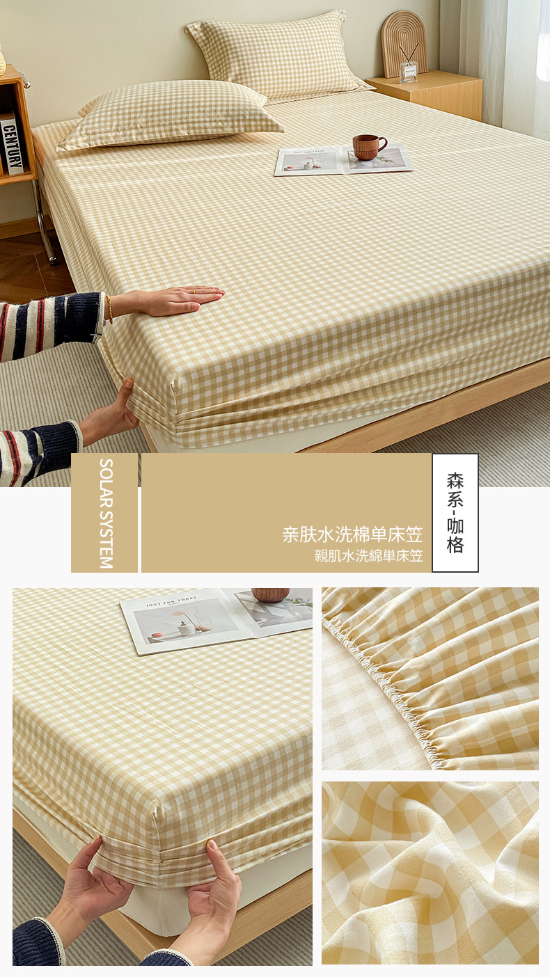 恬澳家纺 2025新款森系水洗棉无印风单床笠场景三 森系-咖格