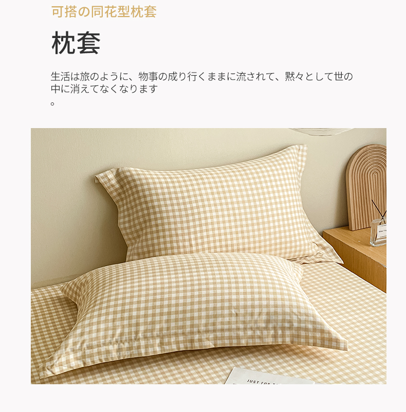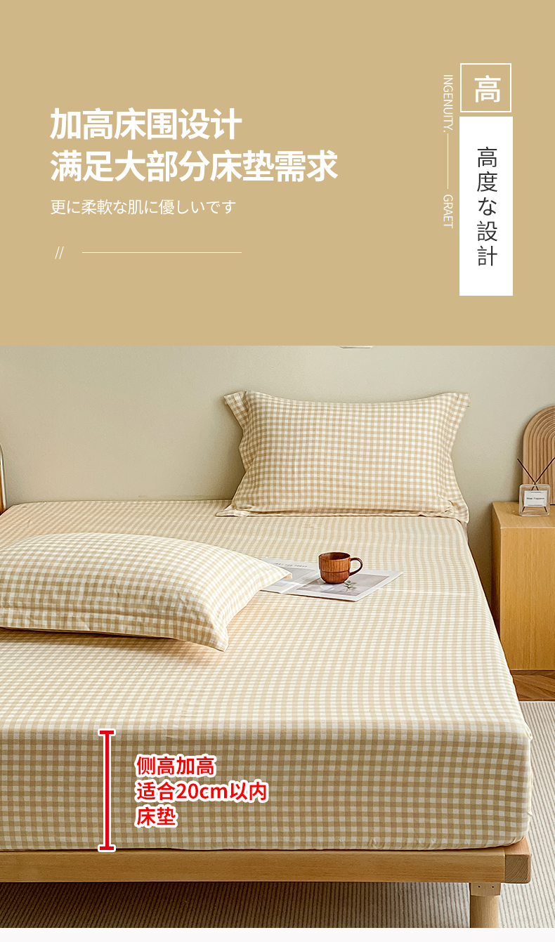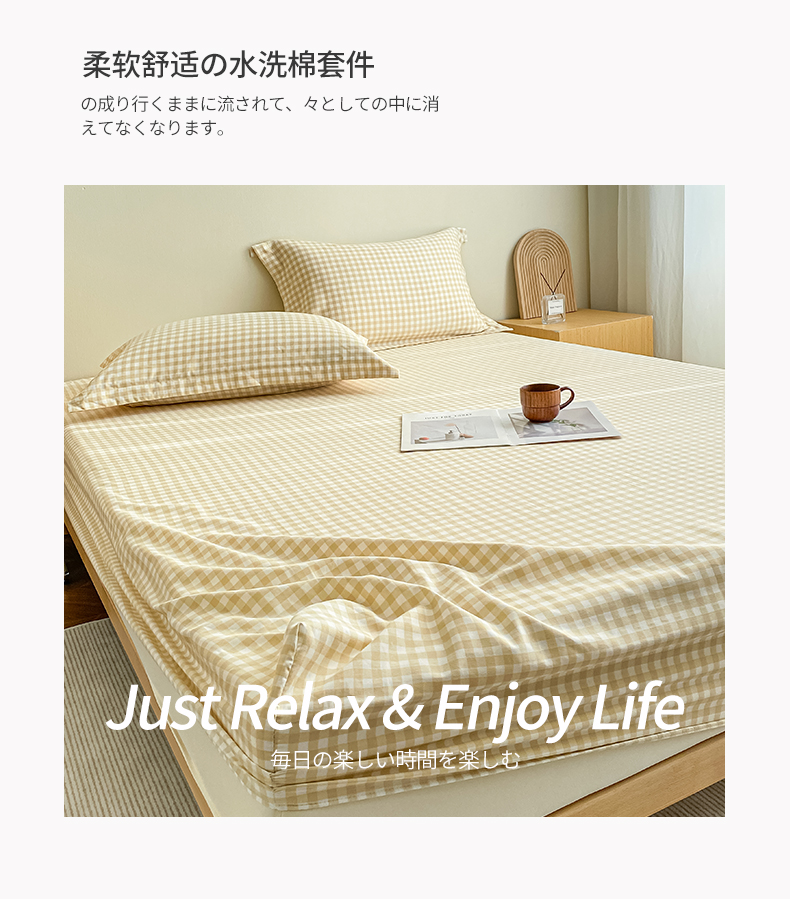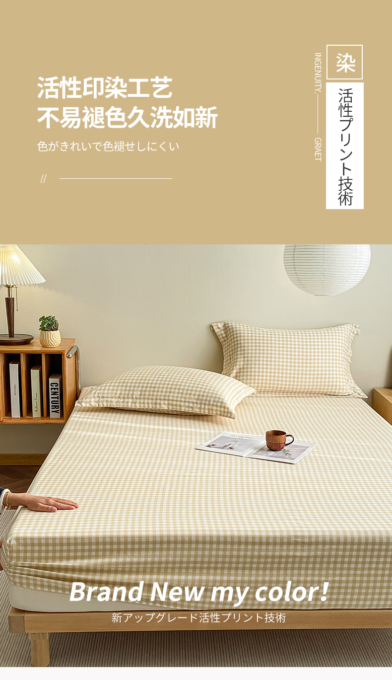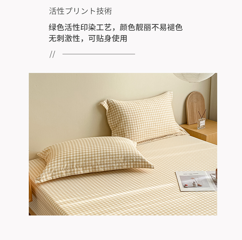 恬澳家纺 2025新款森系水洗棉无印风单床笠场景三 森系-咖格