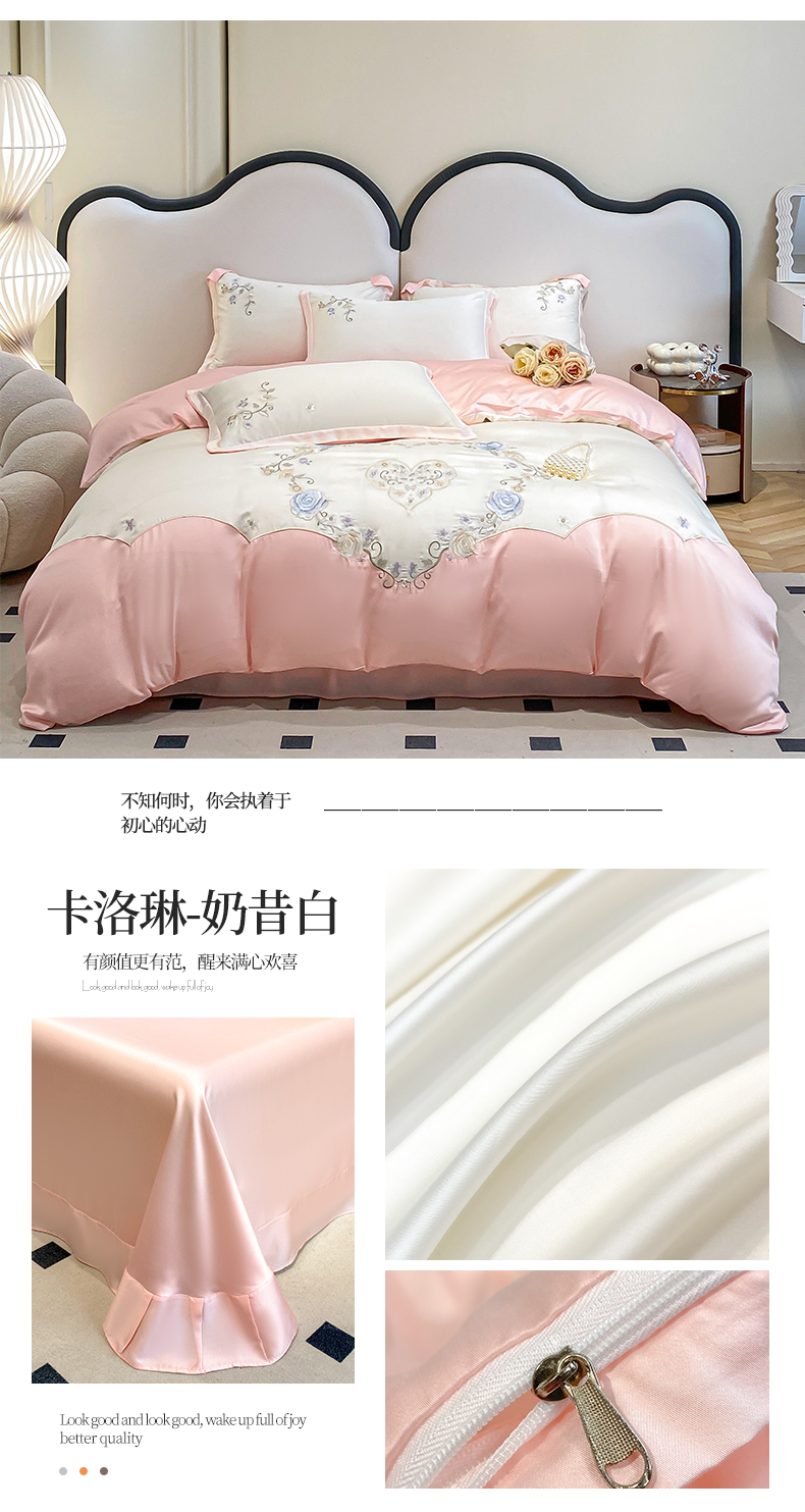 爱家(原缔乐家纺) 2025新款雪莲天丝四件套-卡洛琳 卡洛琳-公主粉