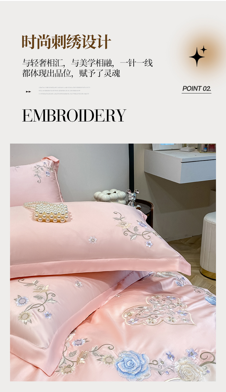 (总)爱家 2023新款超柔雪莲天丝刺绣四件套-花开半夏系列,花开半夏-宾利蓝,花开半夏-公主粉,花开半夏-奶油黄,花开半夏-奶油绿,花开半夏-优雅紫