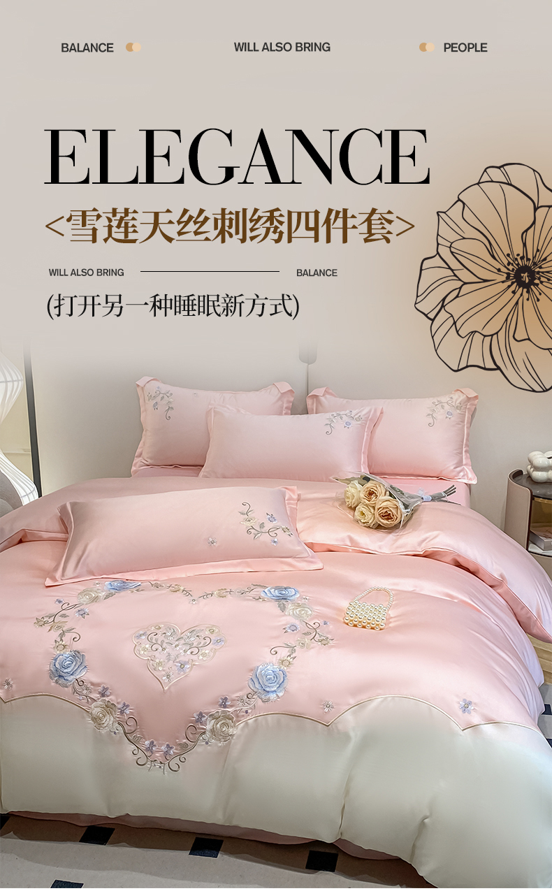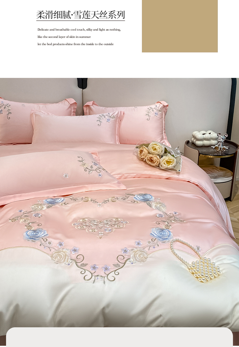 商品名称:爱家(原缔乐家纺) 2025新款雪莲天丝四件套-卡洛琳 卡洛琳-公主粉