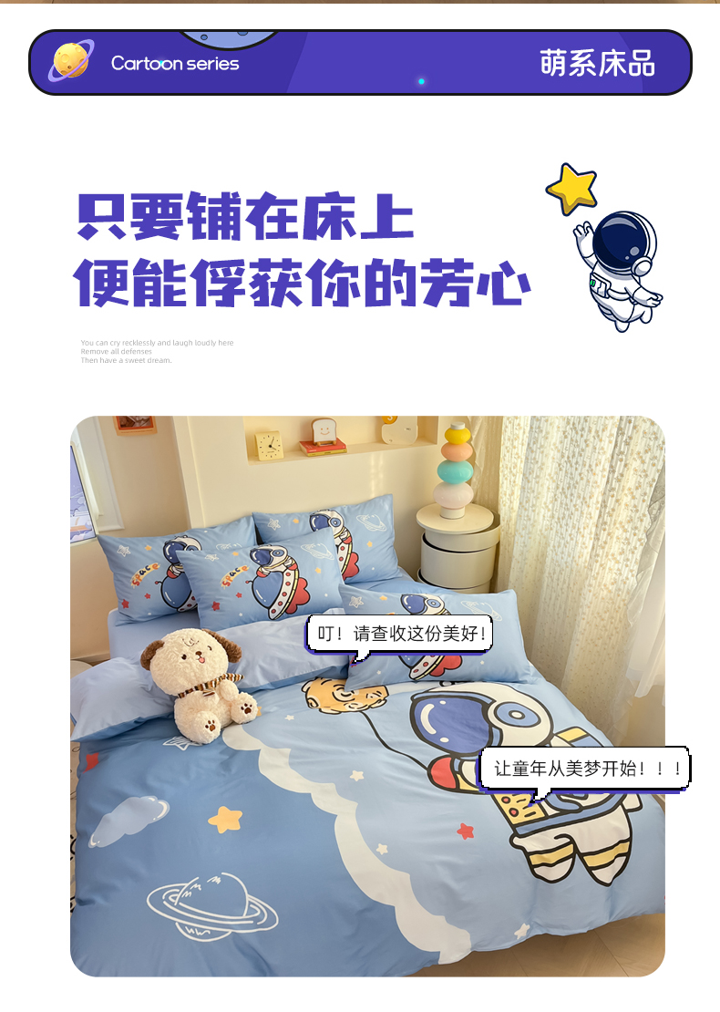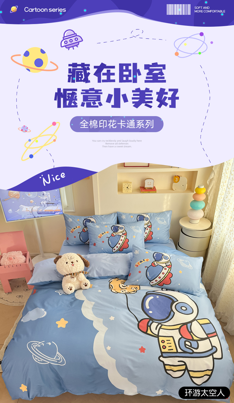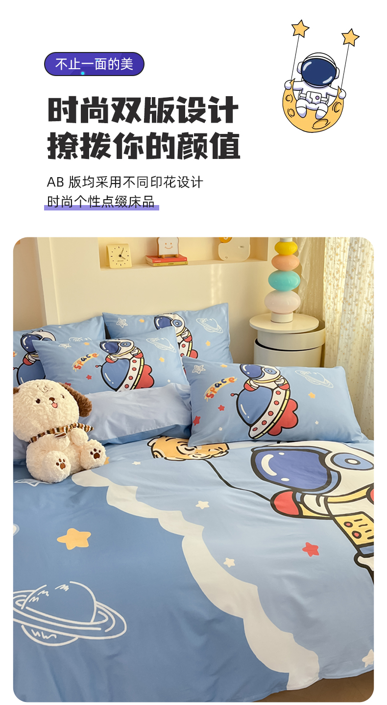 当前位置: 91家纺网 > 商品网购 > 床品套件 > 四件套 > 全棉普通四件套 > 金爱家 2025新款太空人纯棉四件套 环游太空人