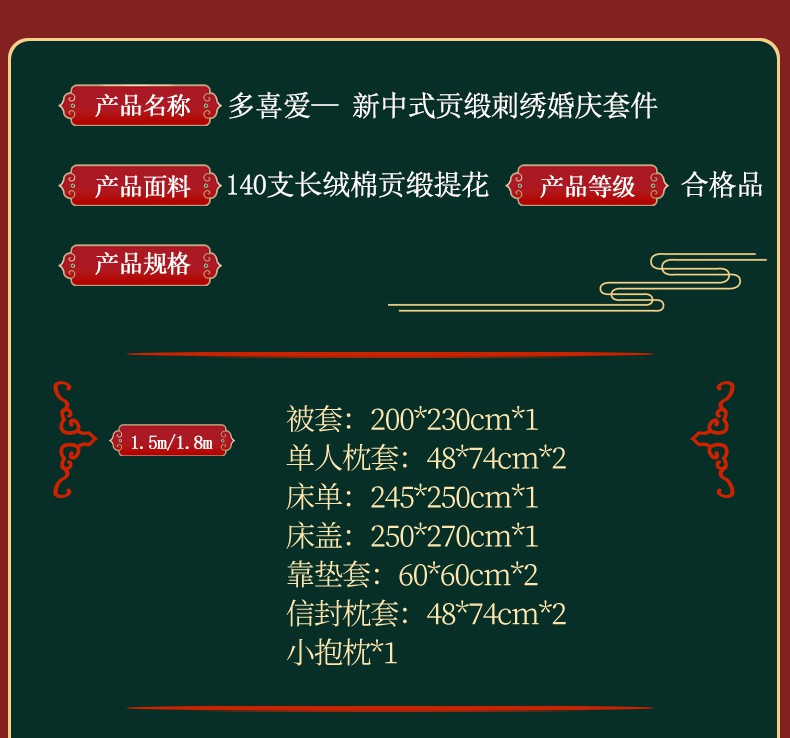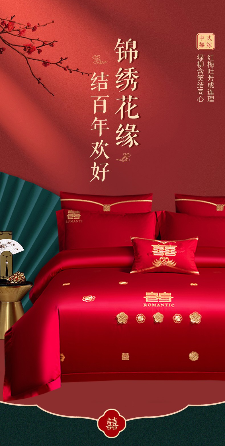 (总)美娘阁 2025新款长绒棉全棉贡缎提花款新中式古典韵味精美刺绣婚庆四件套系列,红颜知己,龙凤大喜,龙凤江山,龙凤喜嗣,龙腾盛世