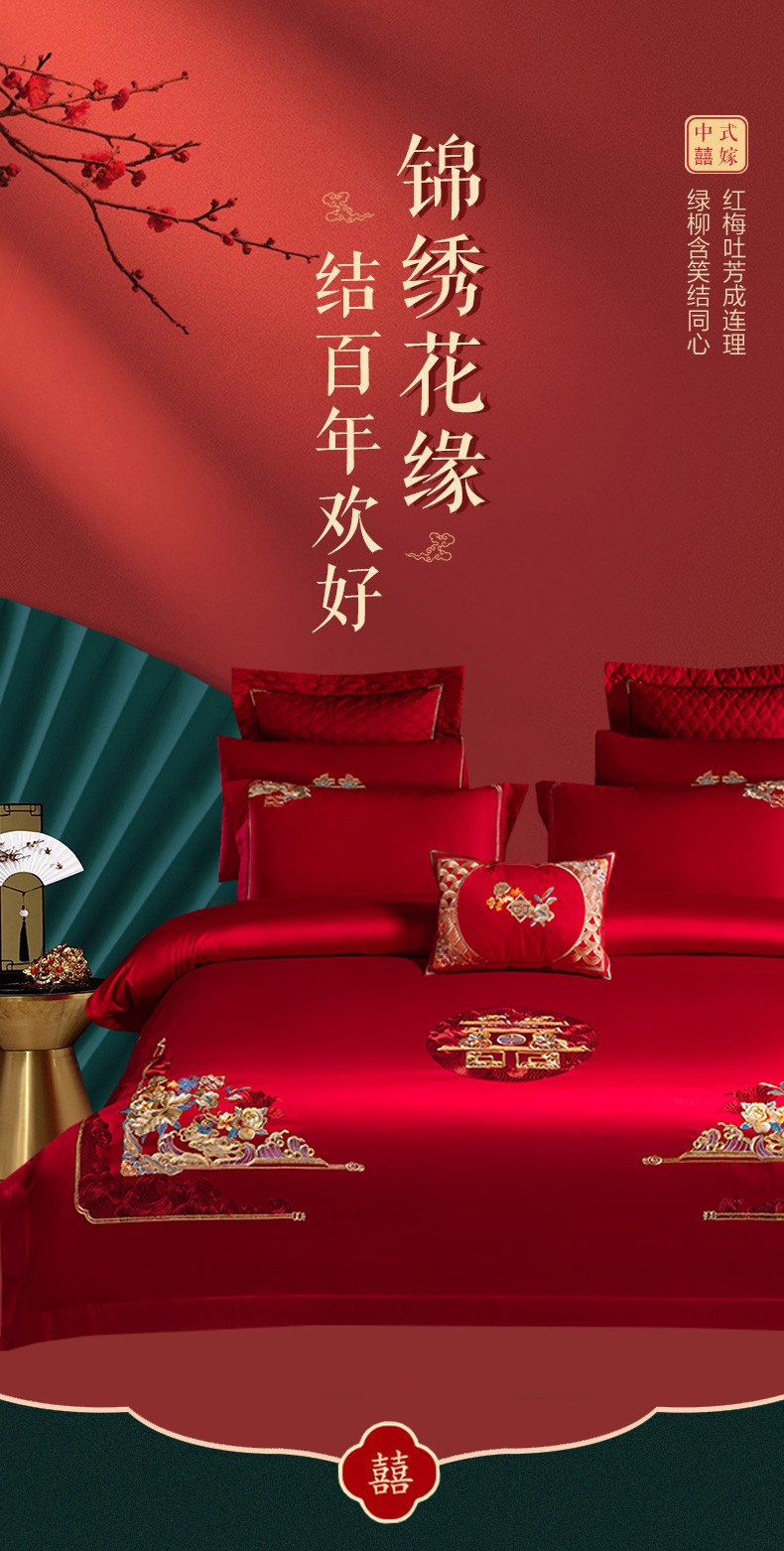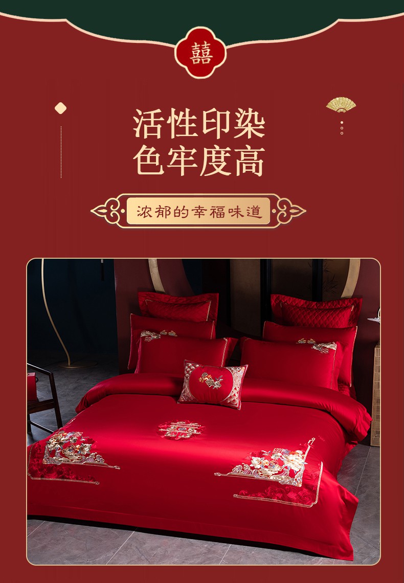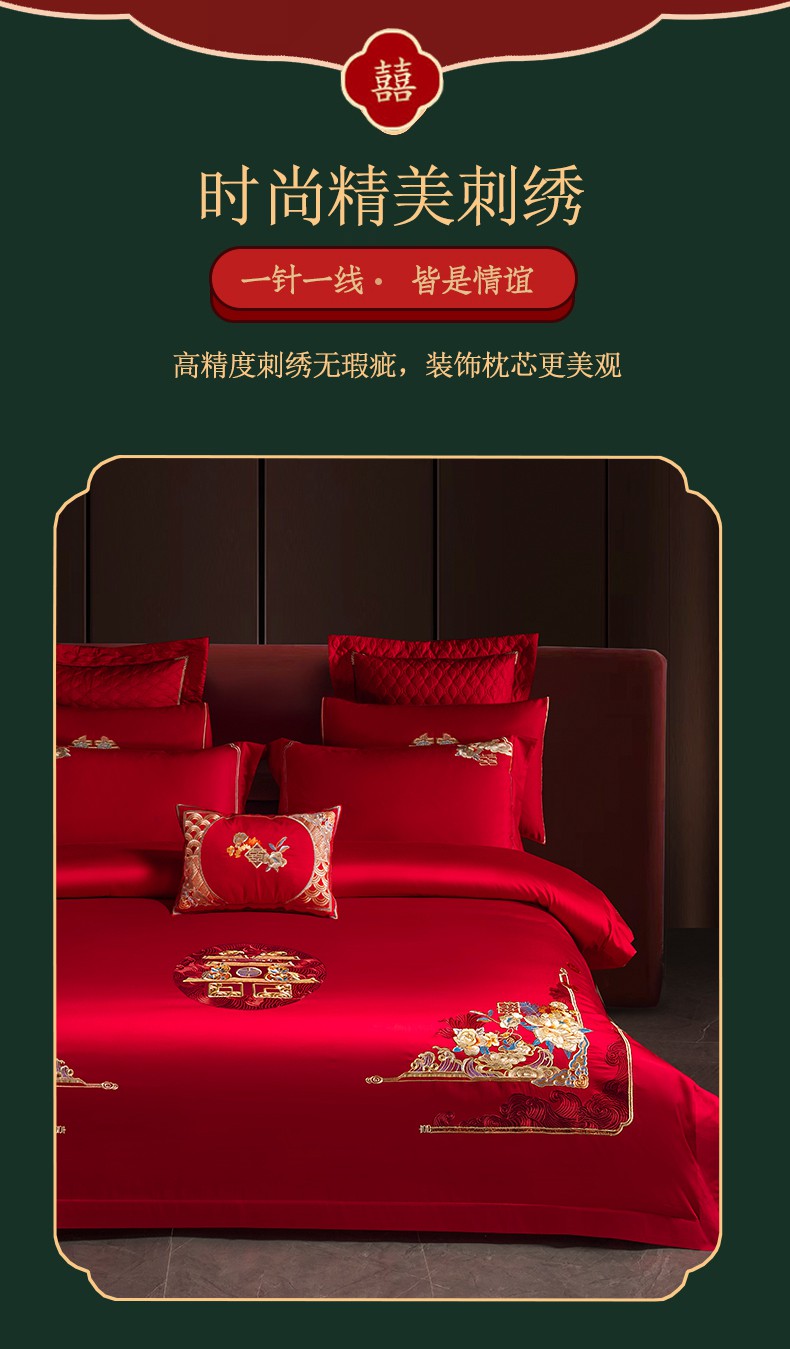 当前位置: 91家纺网 > 商品网购 > 床品套件 > 四件套 > 婚庆四件套 > 美娘阁 2025新款A版长绒棉提花B版长绒棉刺绣婚庆多件套 金枝玉叶