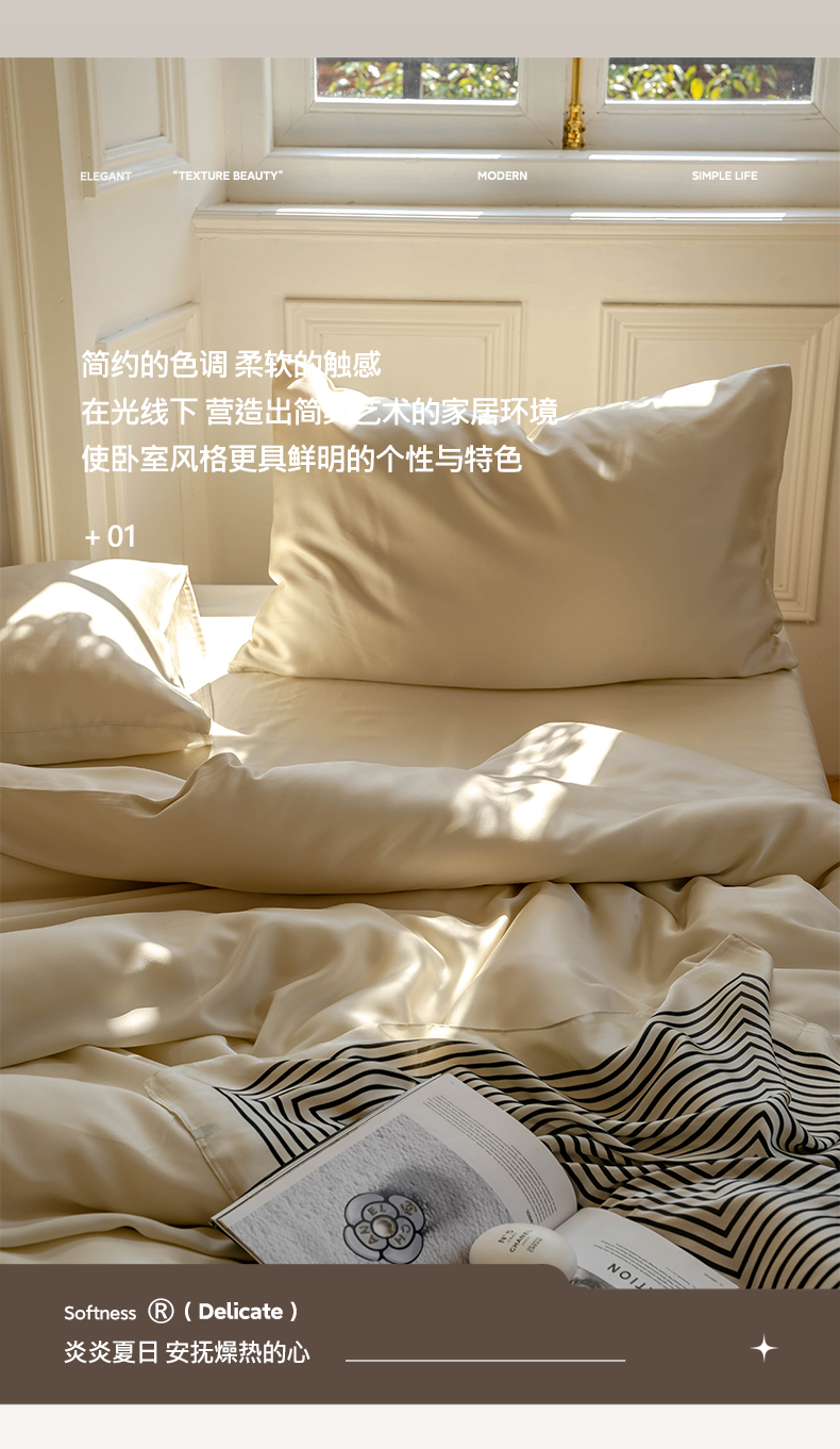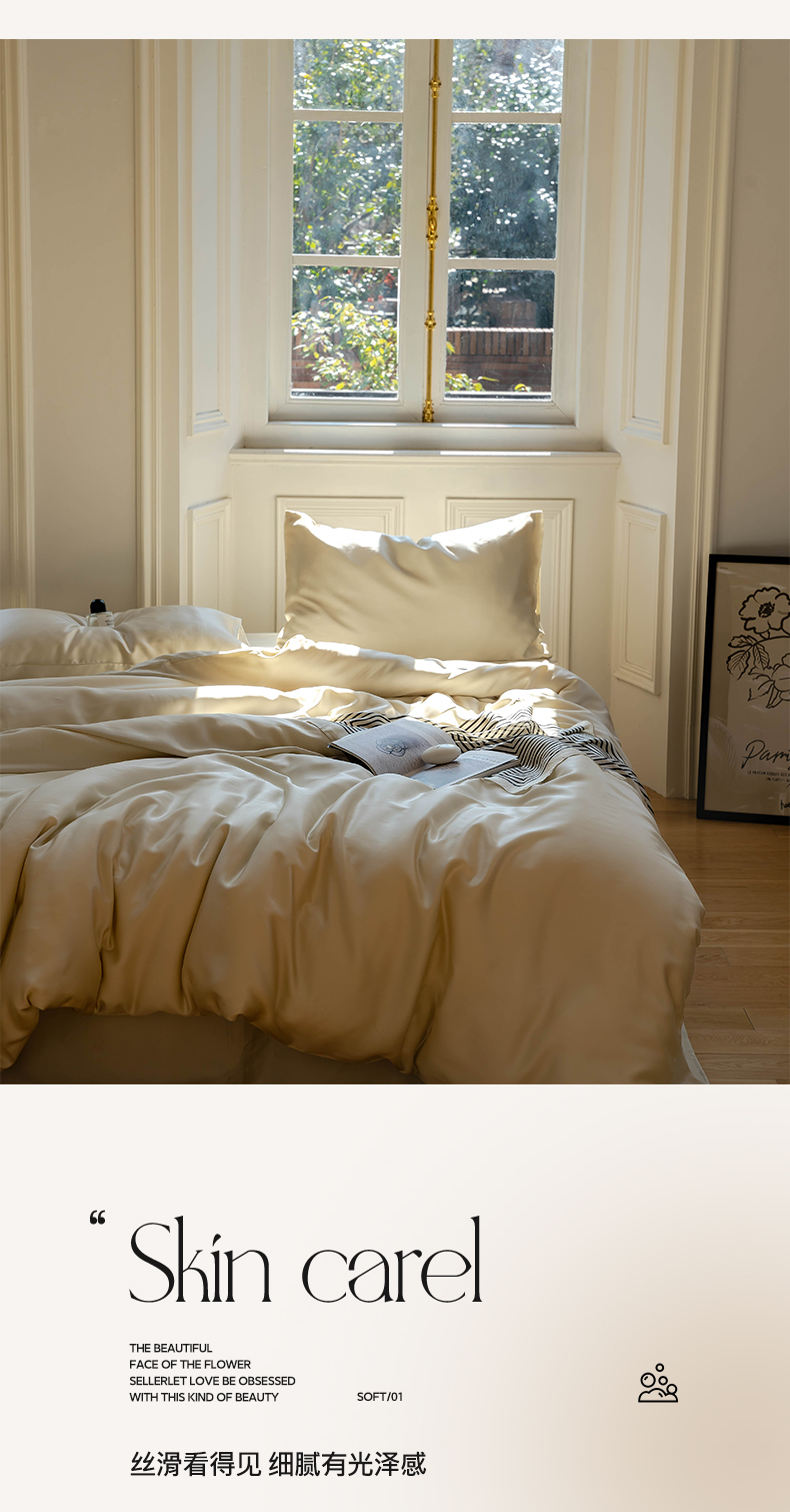 帅露 2025新款60S纯色双拼四件套 极地白