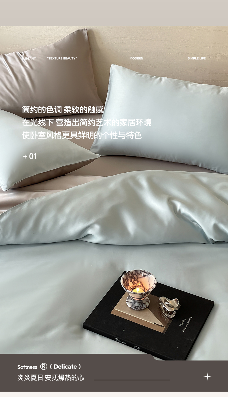帅露 2025新款60S纯色双拼四件套 映霜蓝-霜华银