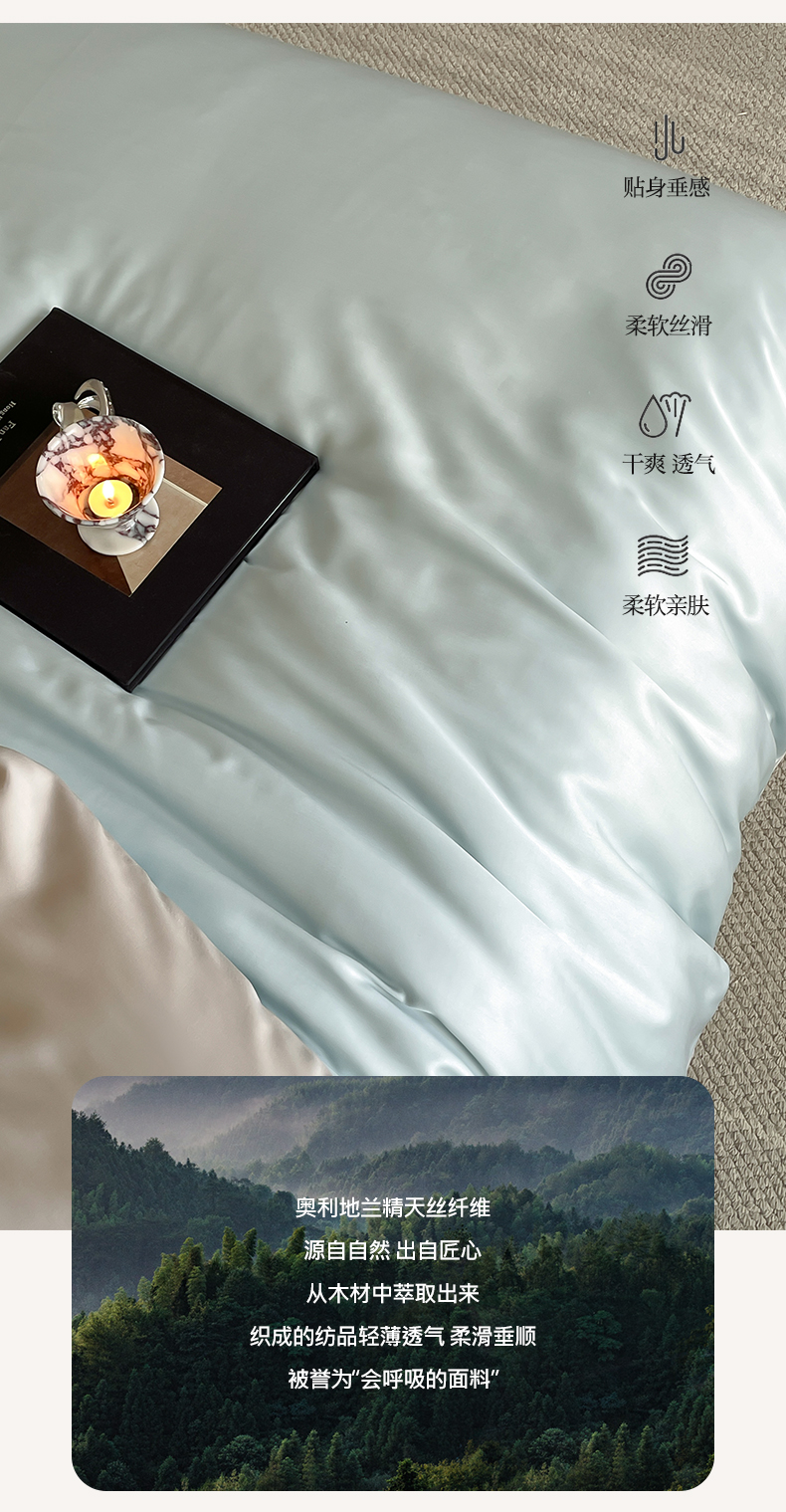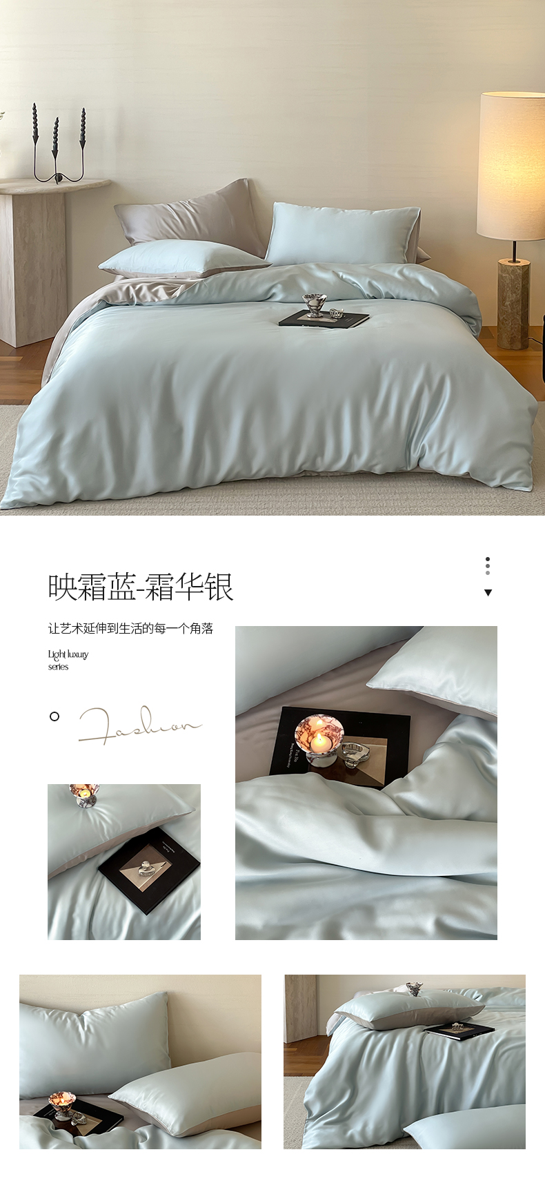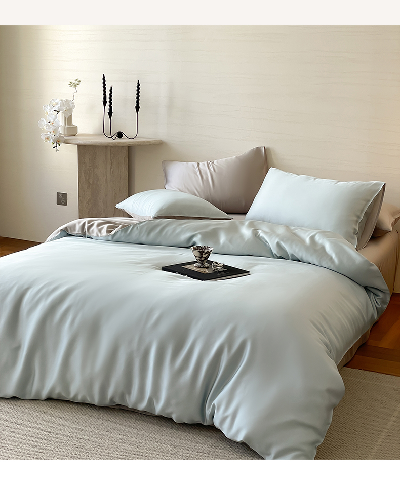 商品名称:帅露 2025新款60S纯色双拼四件套 映霜蓝-霜华银