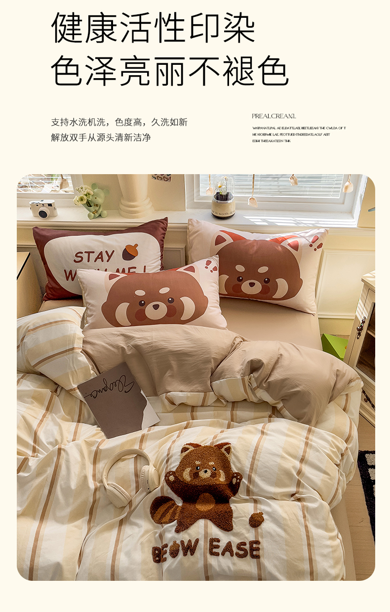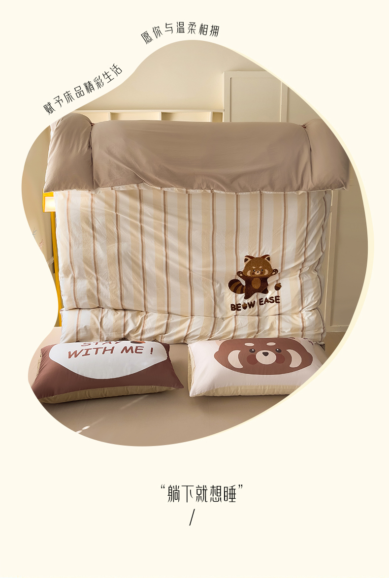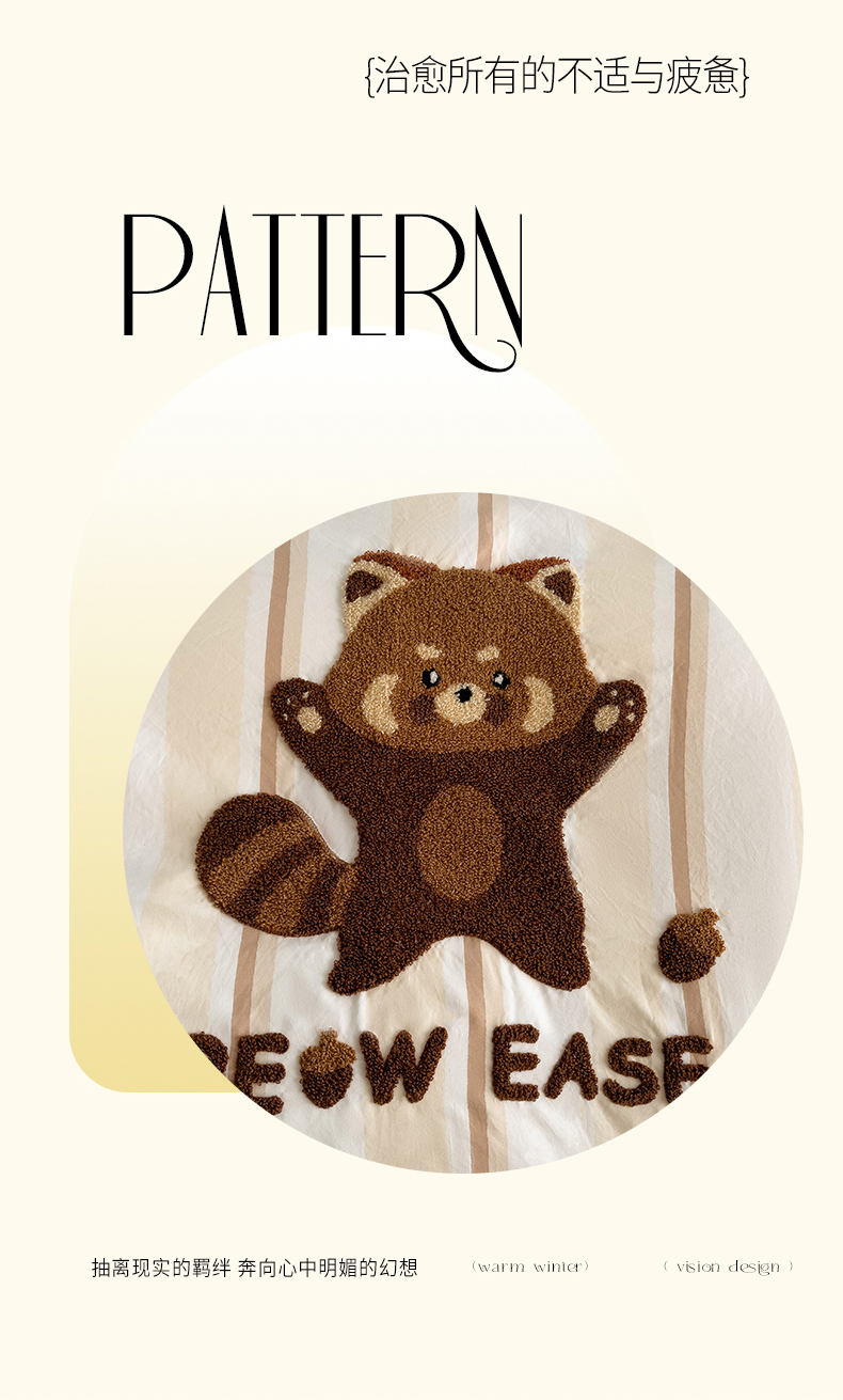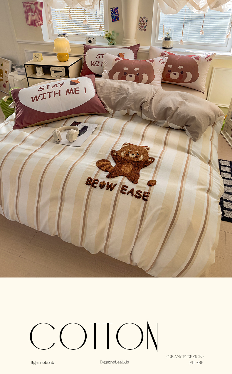 当前位置: 91家纺网 > 商品网购 > 床品套件 > 四件套 > 全棉普通四件套 > 尤米【提供买家秀】2025新款水洗棉大版卡通毛巾绣四件套 小浣熊-咖条